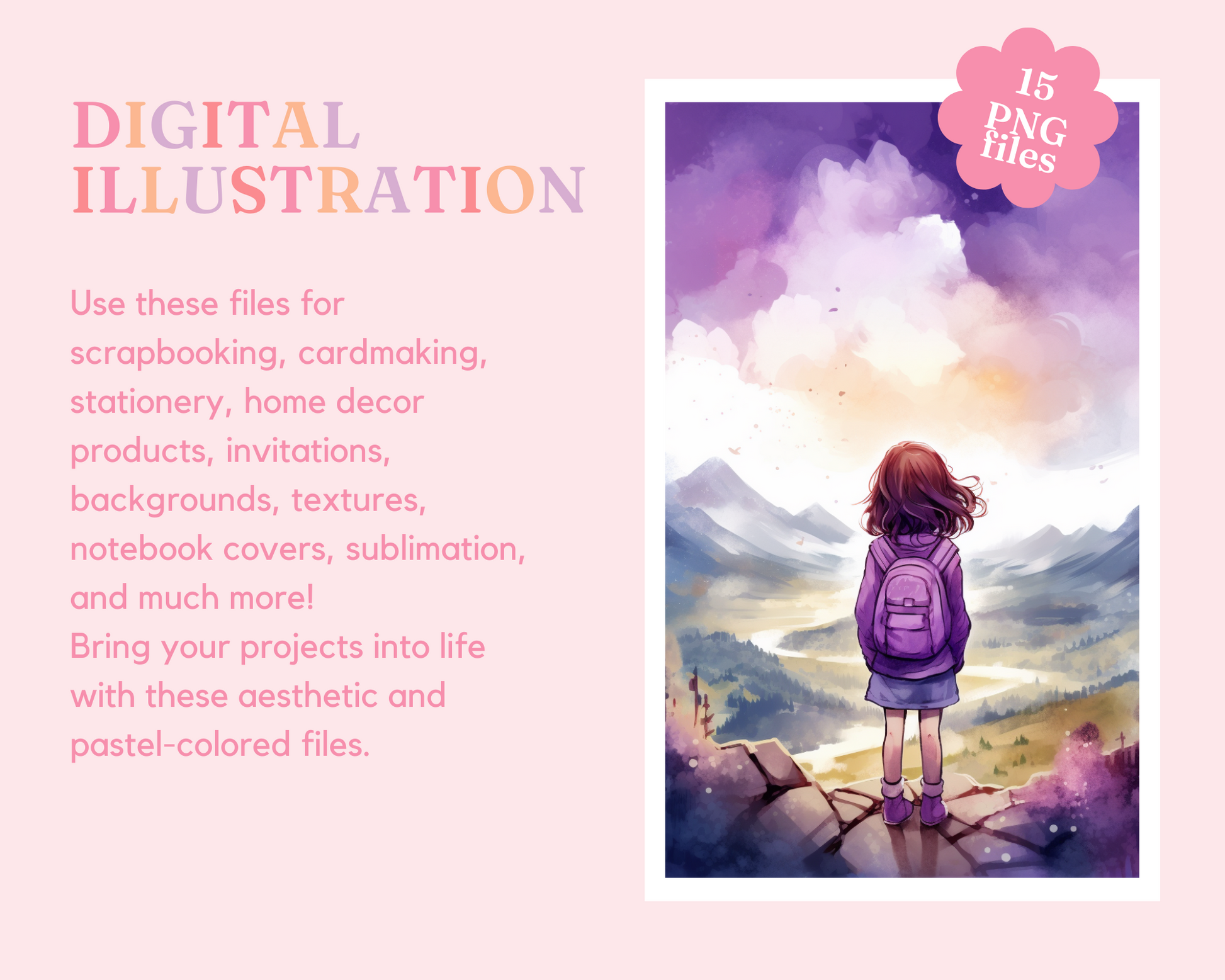 Our collection showcases a series of graceful, hand-drawn characters, each exuding confidence, and poise. Paired with mesmerizing scenic backgrounds, these illustrations are sure to captivate your audience and add a touch of glamour to your projects.
