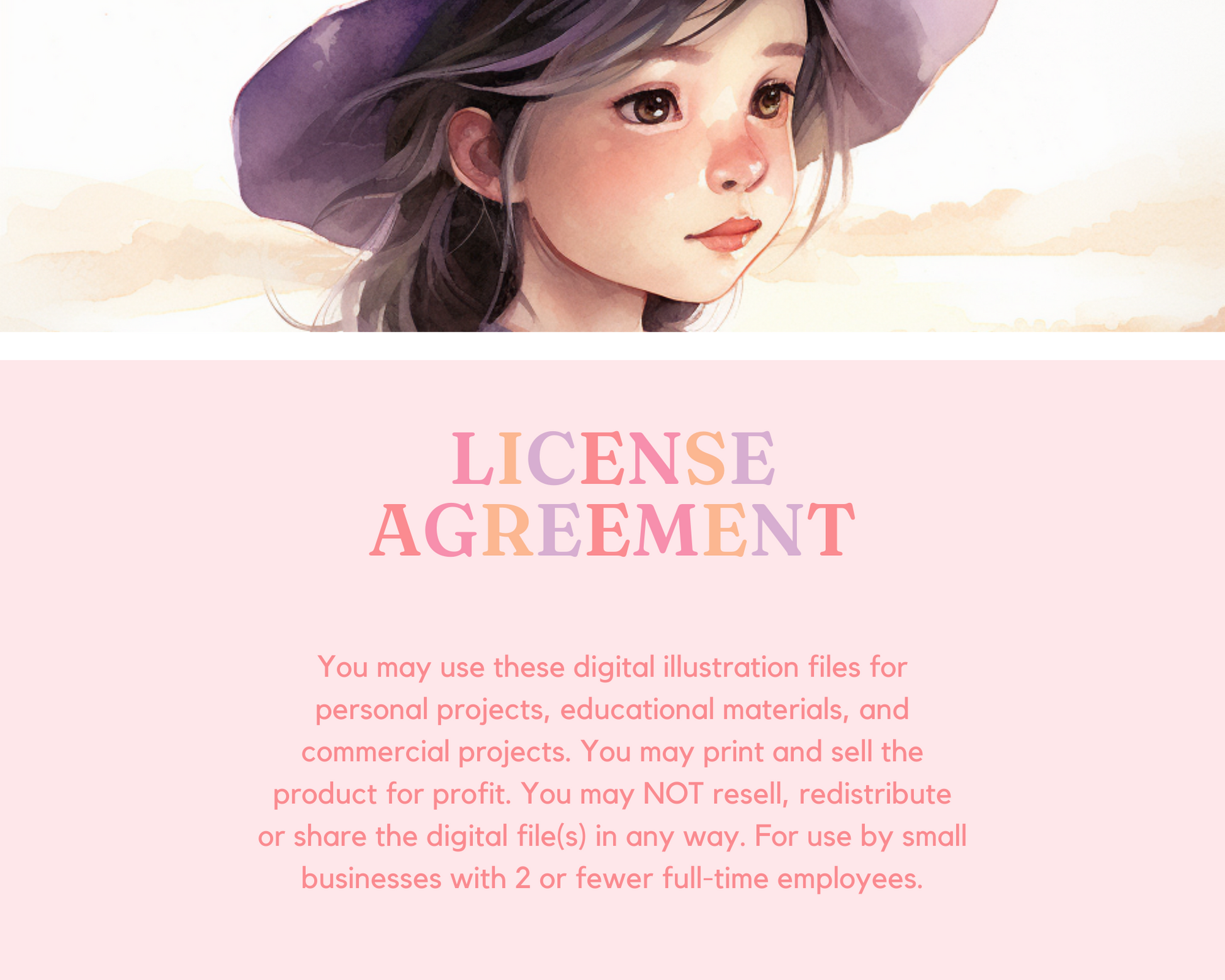 Purple Haze and Dreamy Blue Bundle - Chibi Watercolor Digital Illustration - Commercial Use