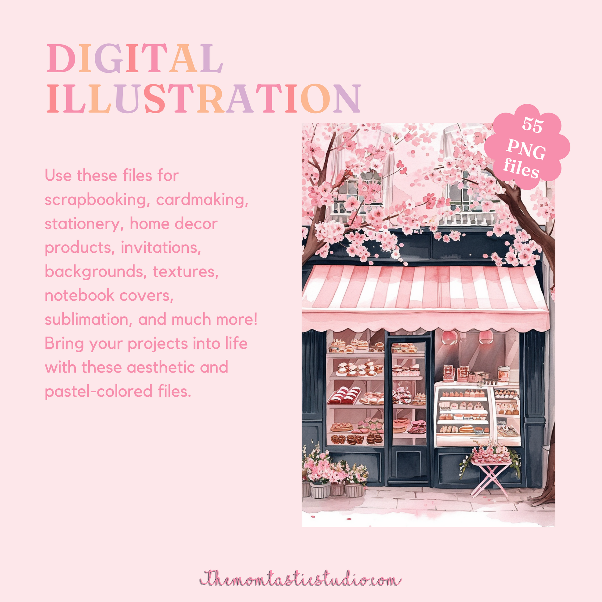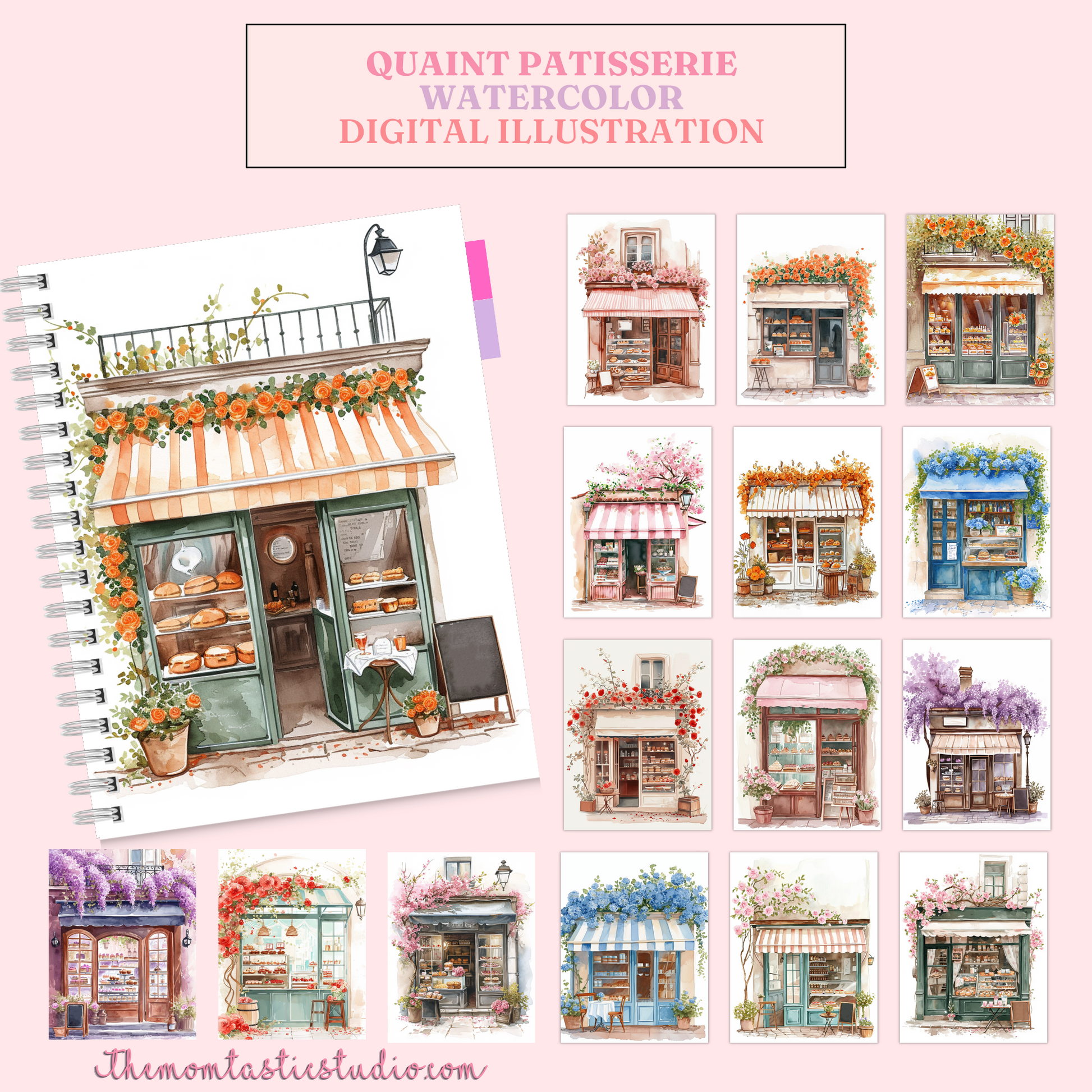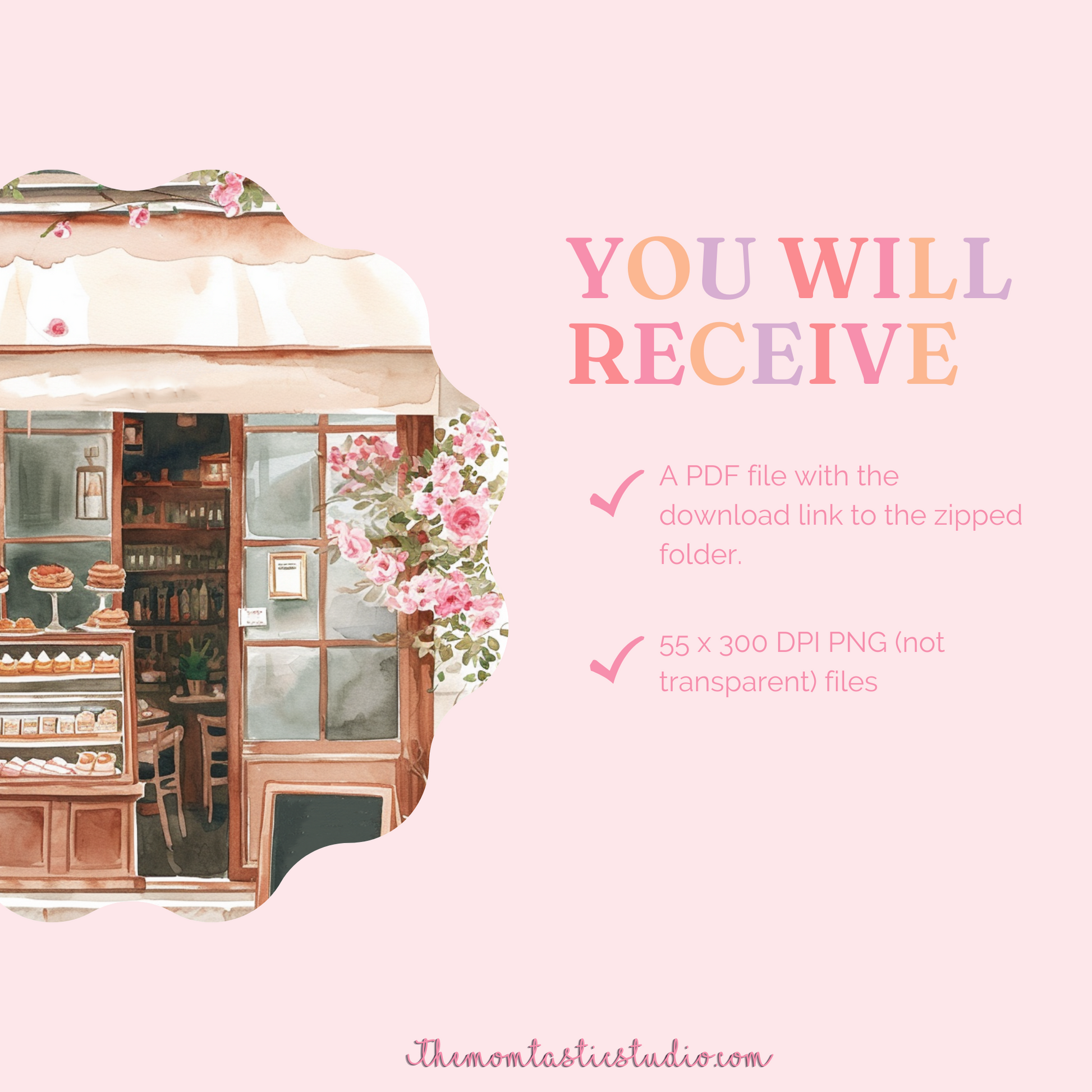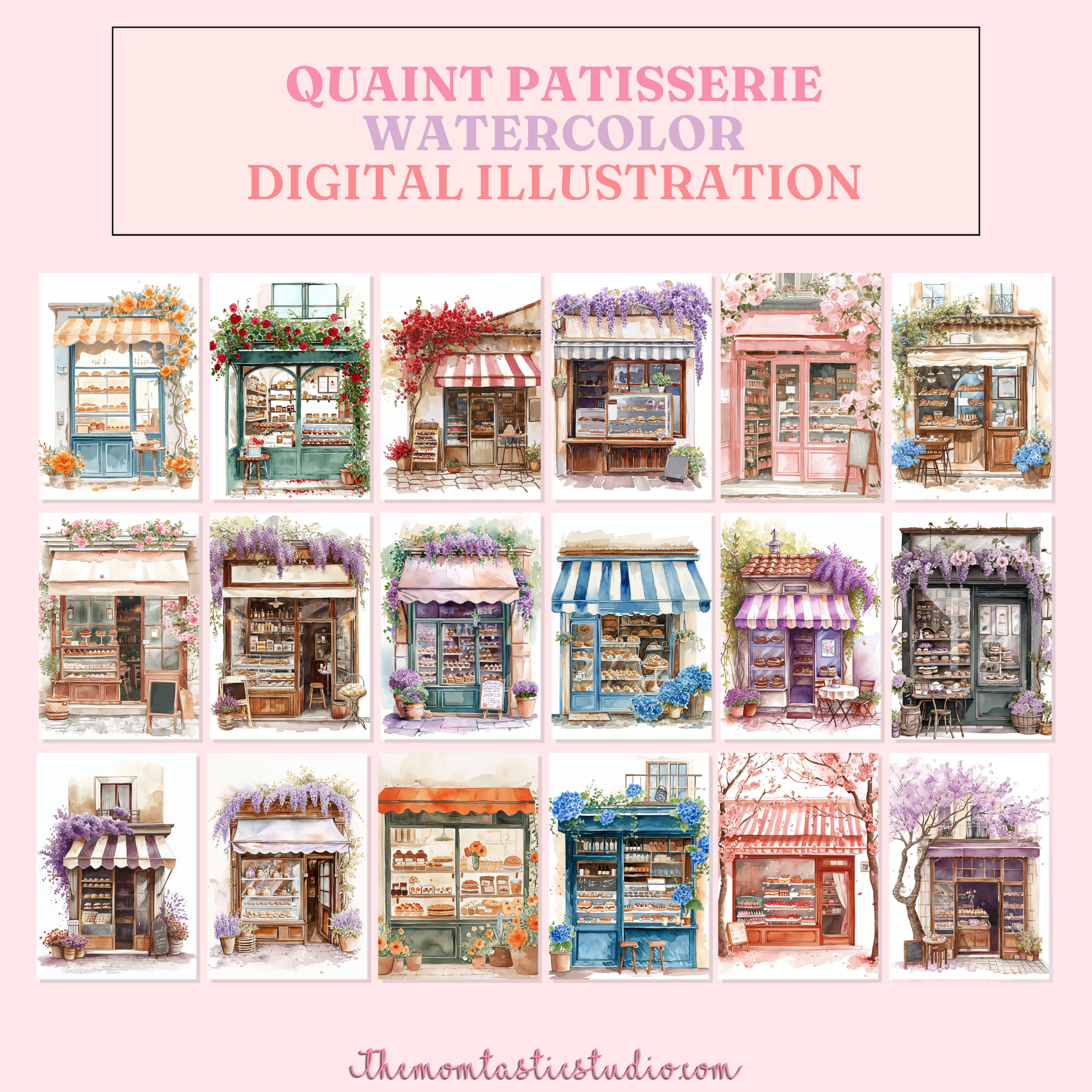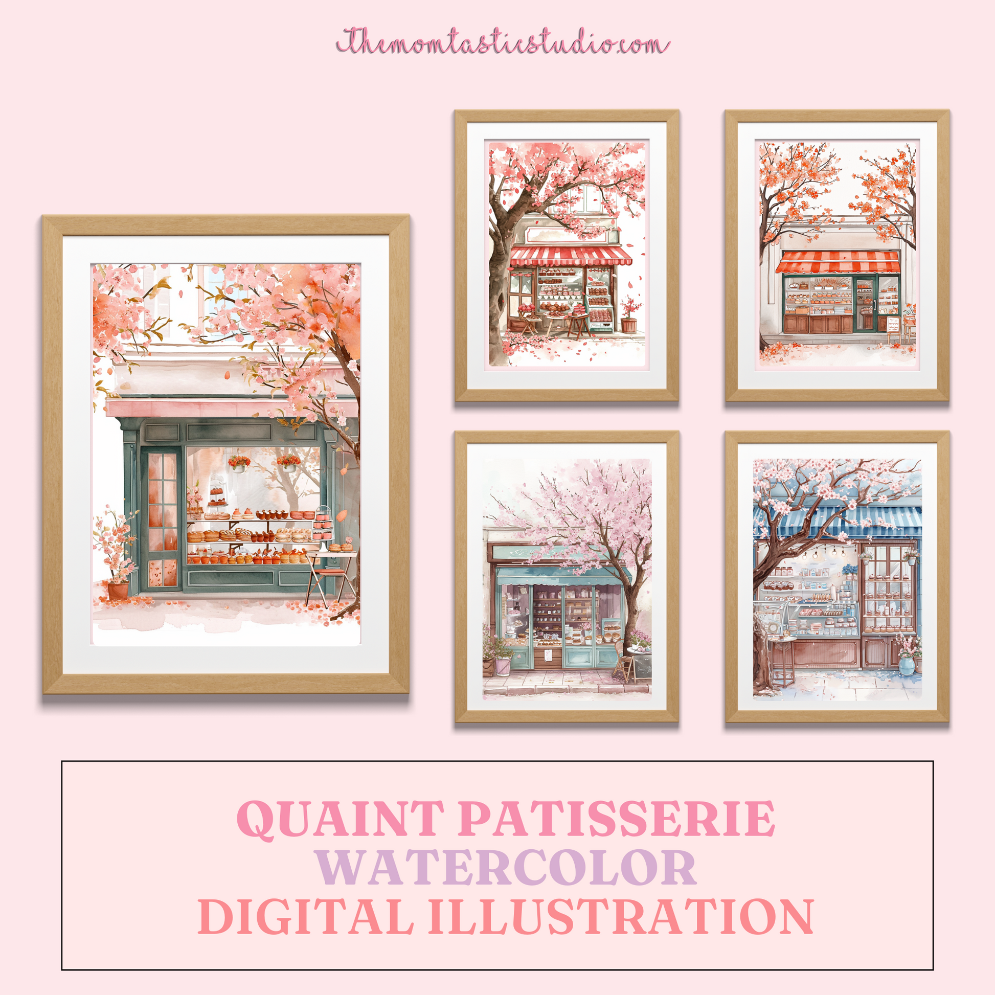 Quaint Patisserie Watercolor Digital Illustration 300DPI – Instant Download – Commercial Use