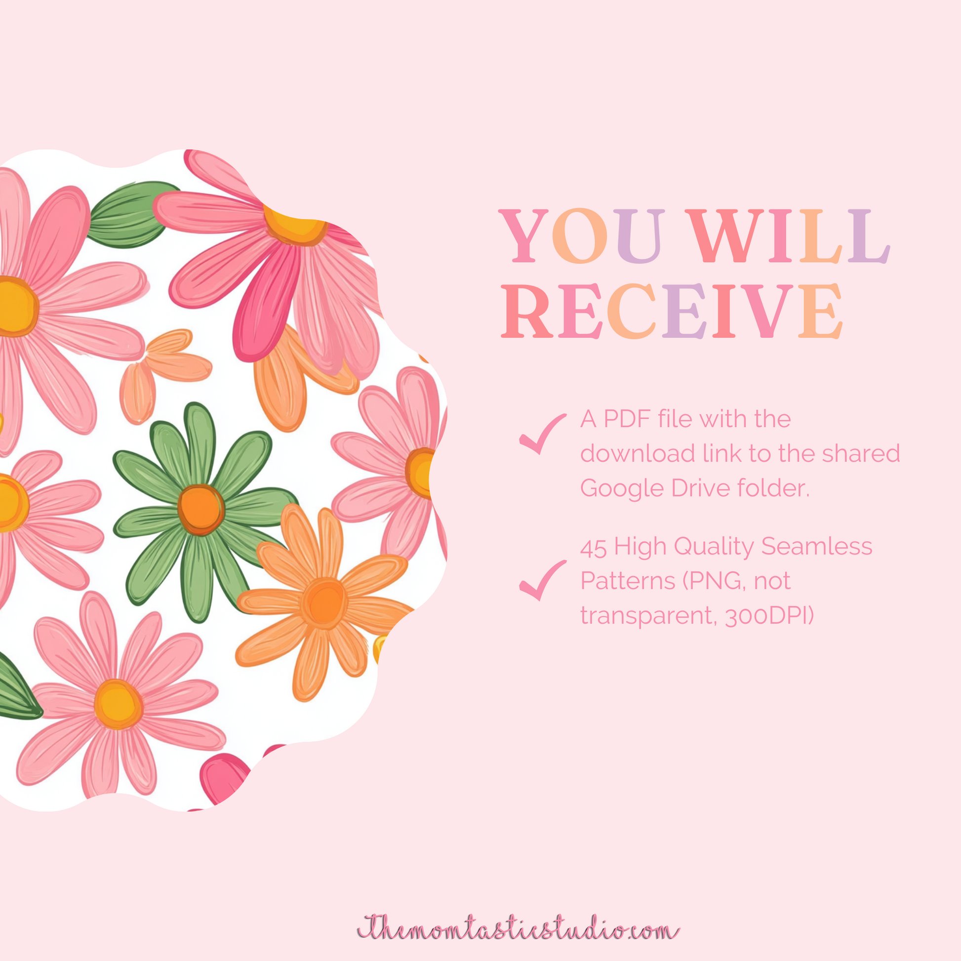 Retro Blooms Seamless Patterns for Commercial Use, Digital Paper - 300 DPI