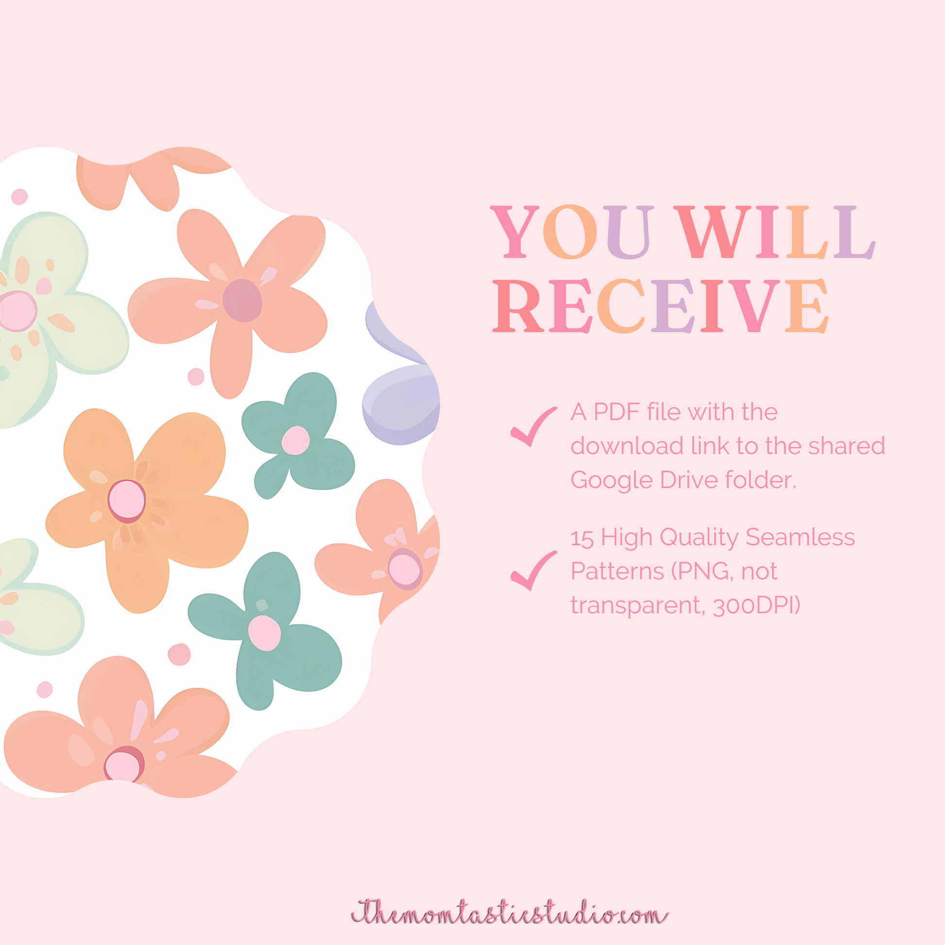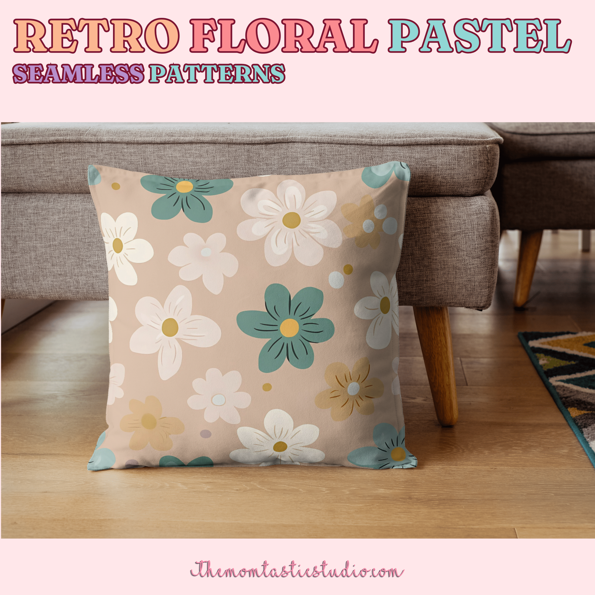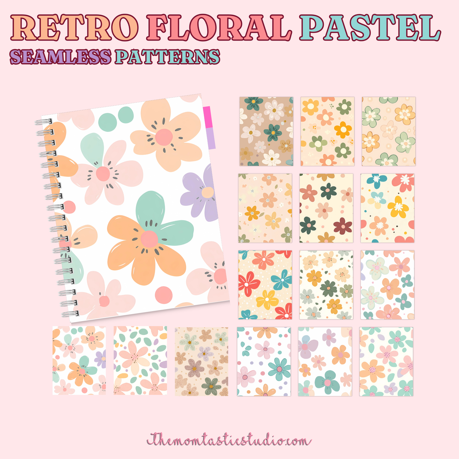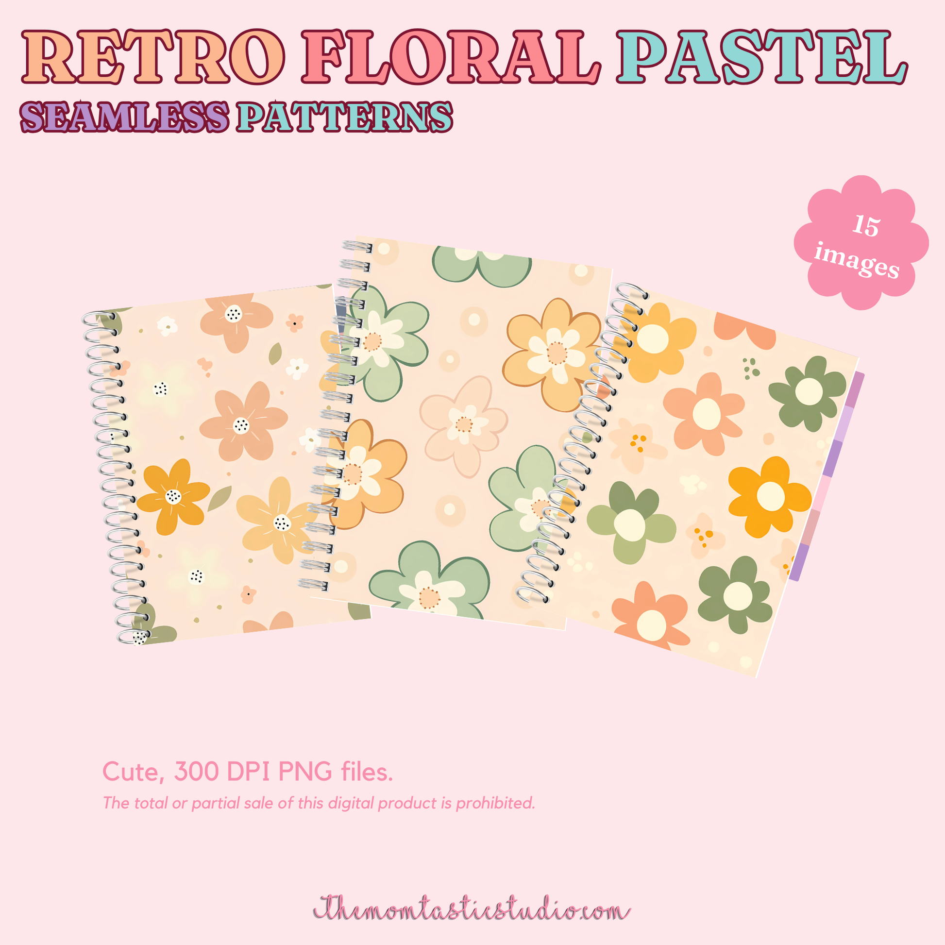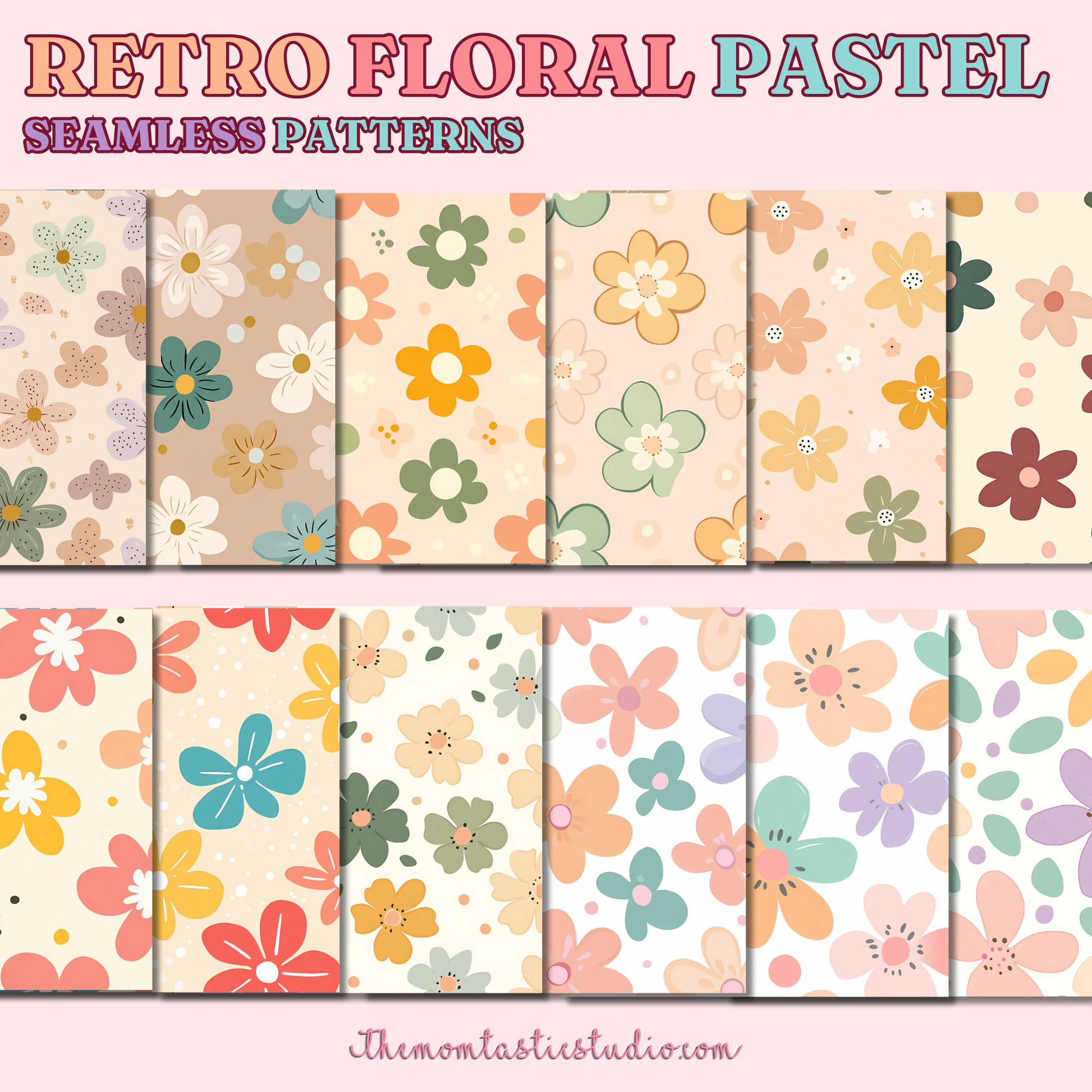 Retro Floral Pastel Seamless Patterns for Commercial Use, Digital Paper - 300 DPI