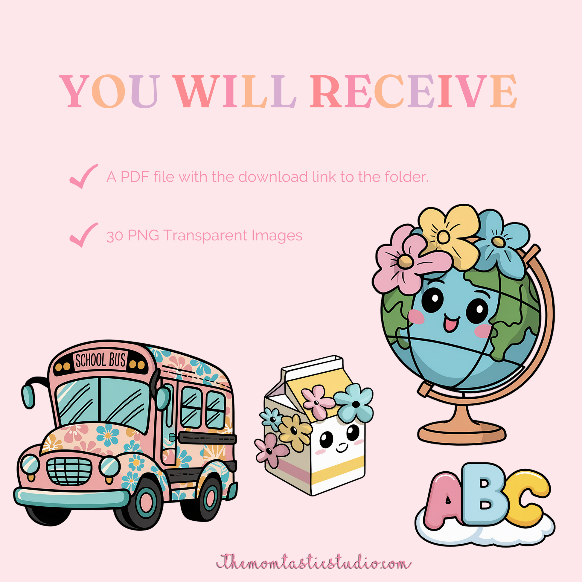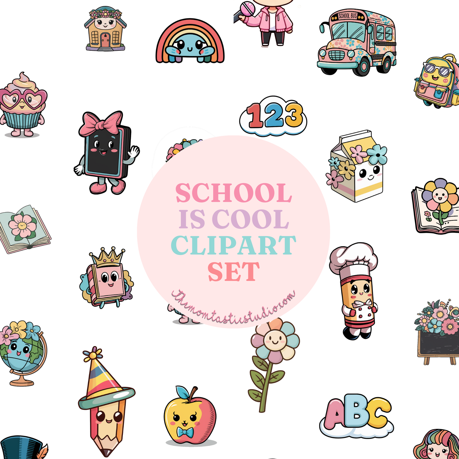 School is Cool – Clipart Set - Planner Sticker - High-Quality PNG - Transparent Background - Commercial Use