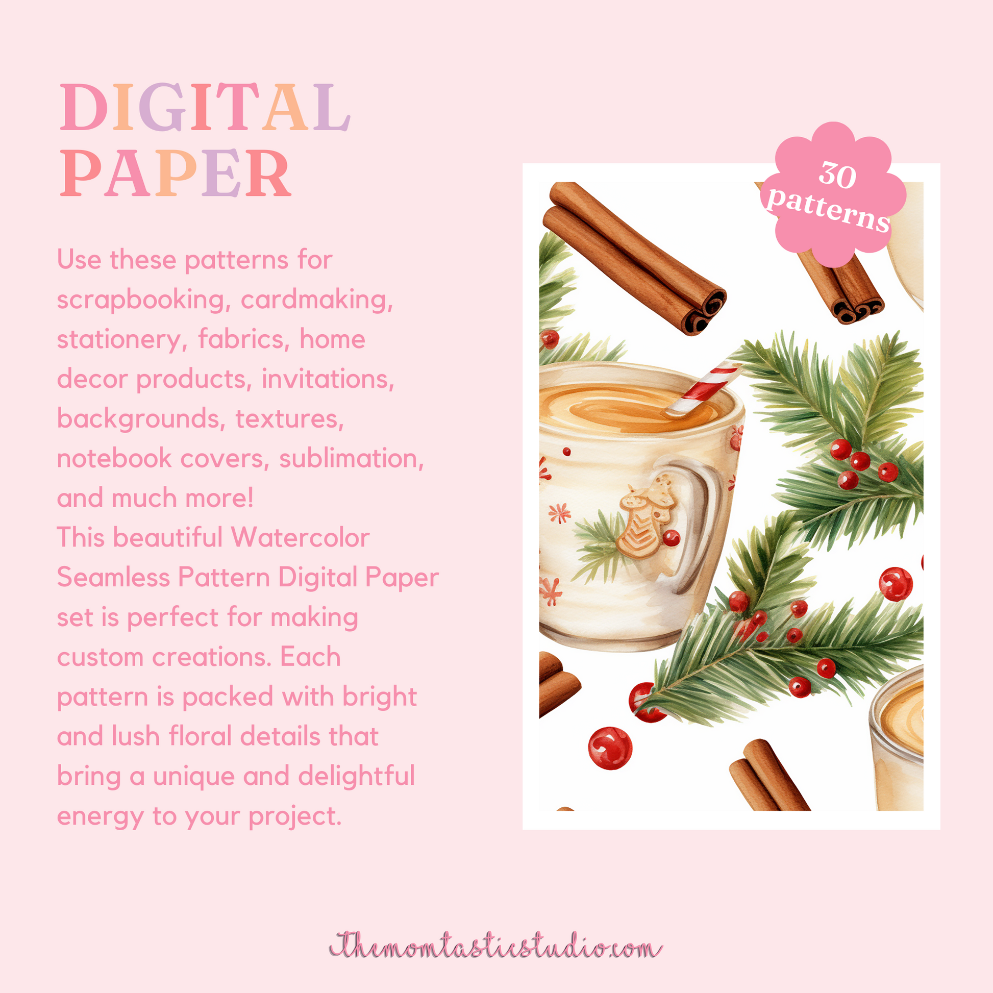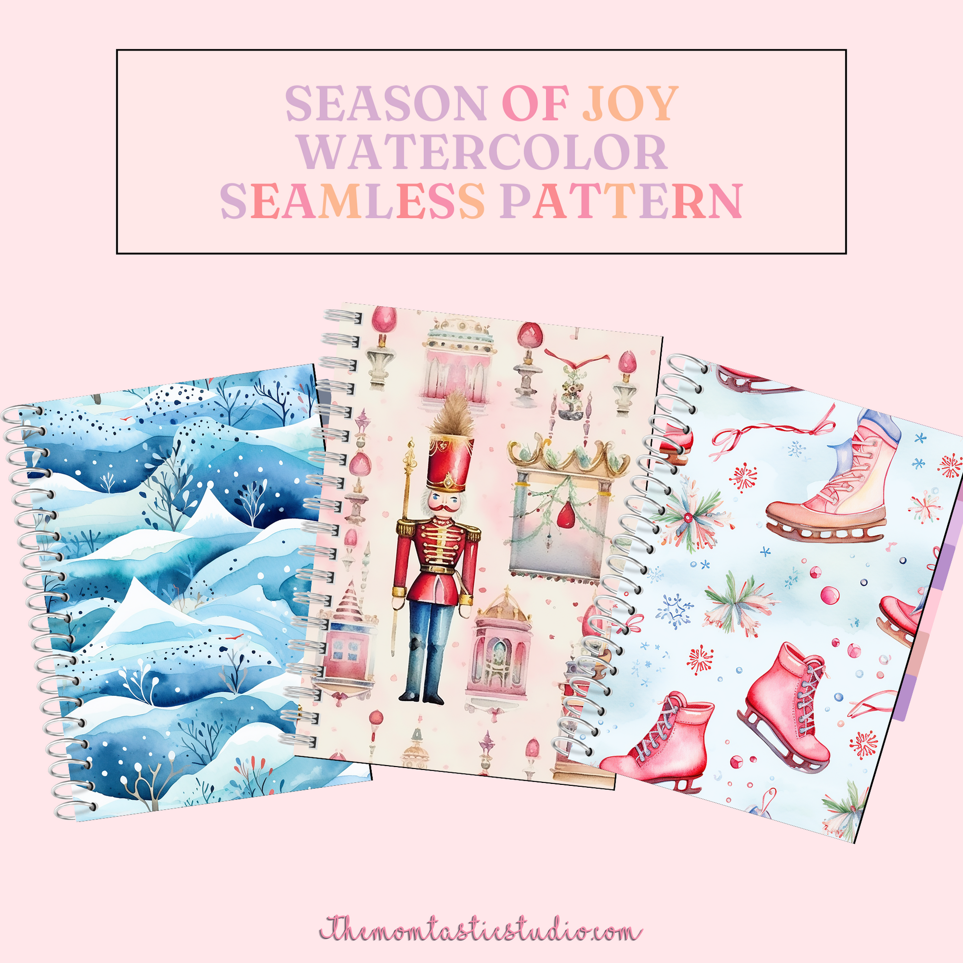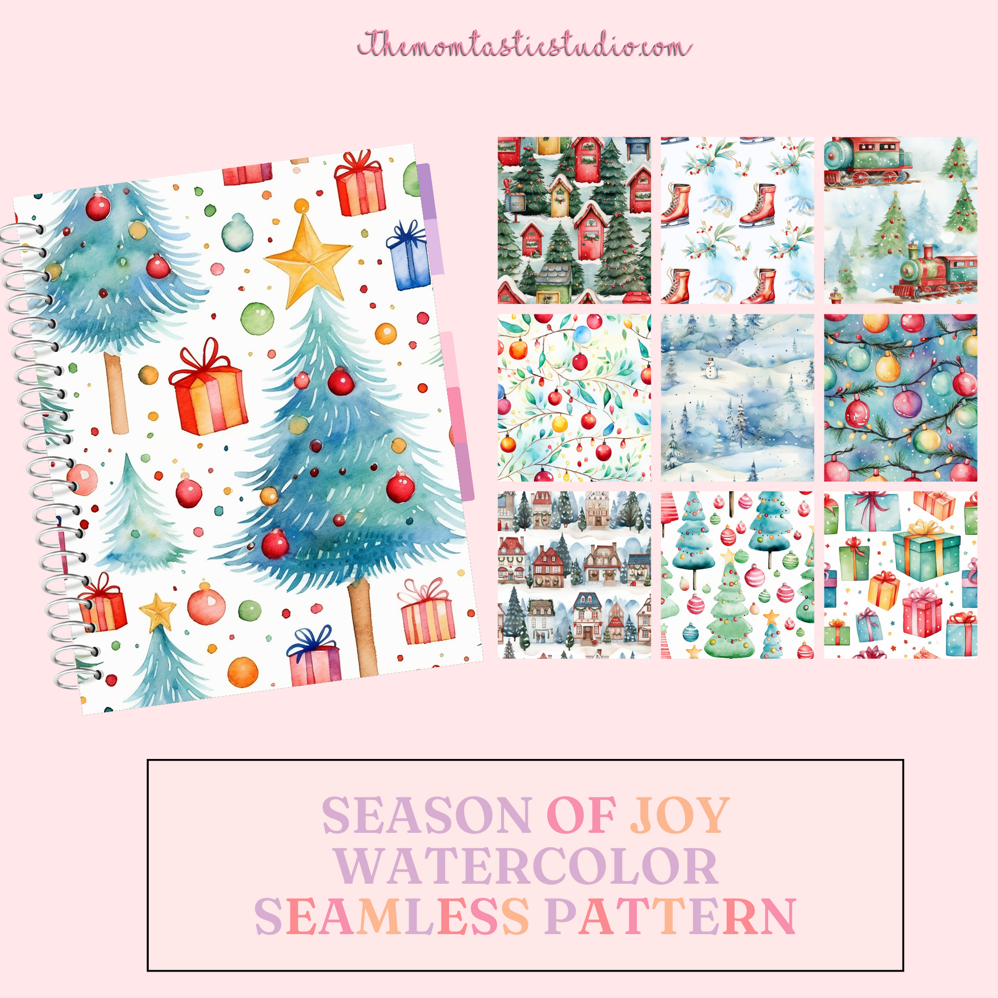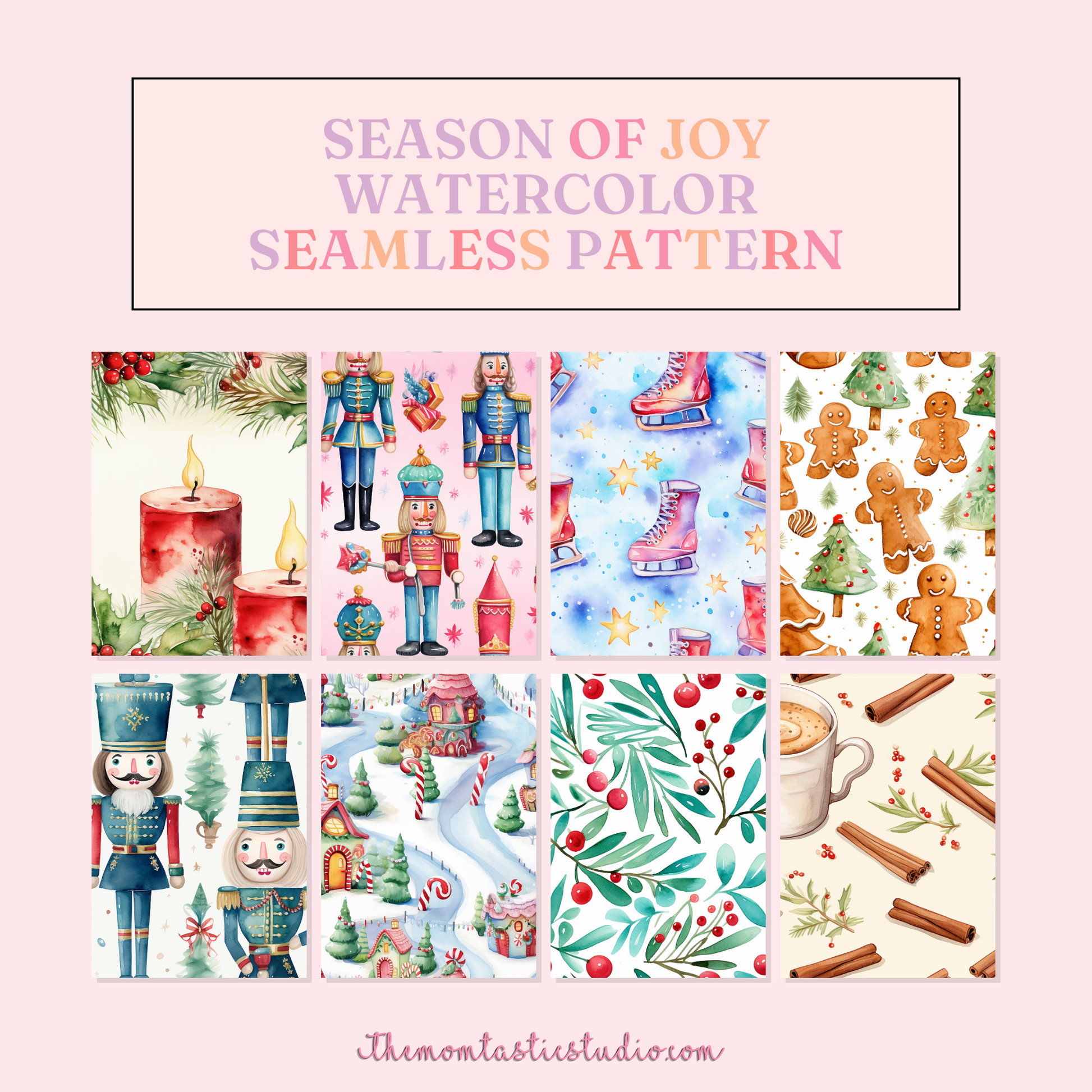 Season of Joy Seamless Pattern, Watercolor Pattern | Christmas Gift Wrappers | Digital Paper | Commercial Use