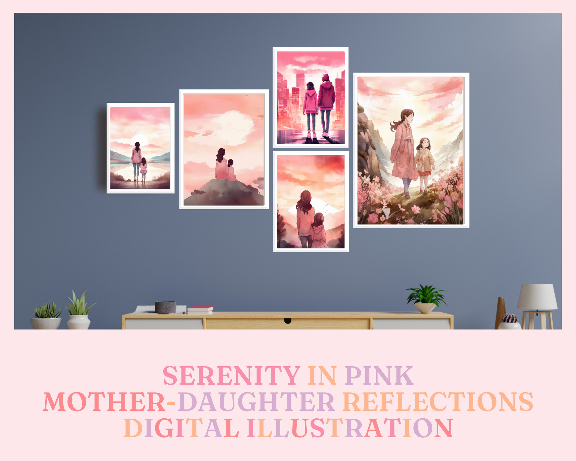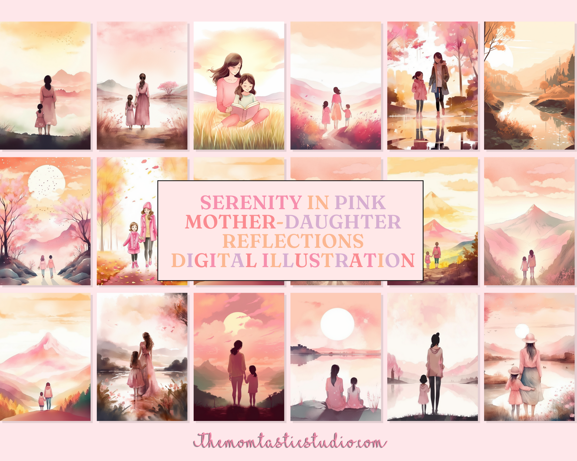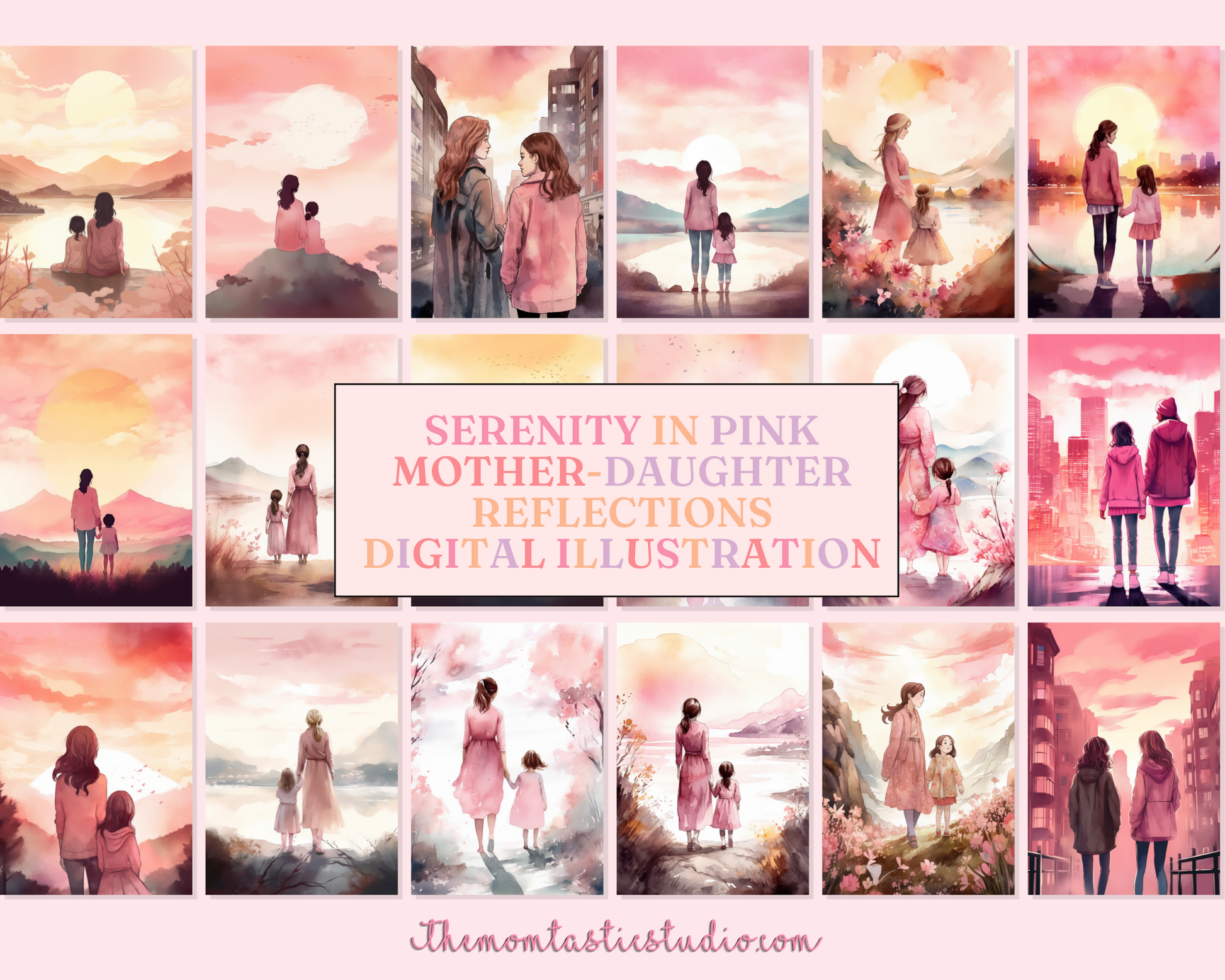 ✨ Celebrate the special bond between mother and daughter with our heartwarming Serenity in Pink: Mother Daughter Illustration collection. Featuring tender scenes of maternal love set against delicate pink hues, these high-resolution digital files are perfect for capturing the unique connection shared by parent and child. Instantly download and start enhancing your work with these touching designs! ✨