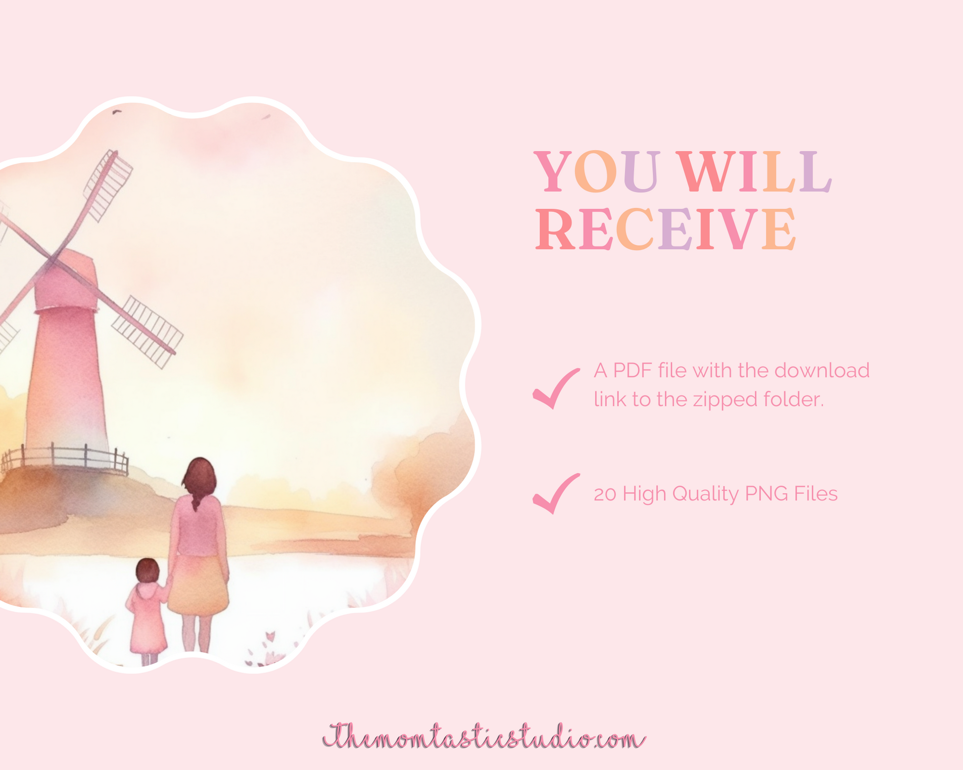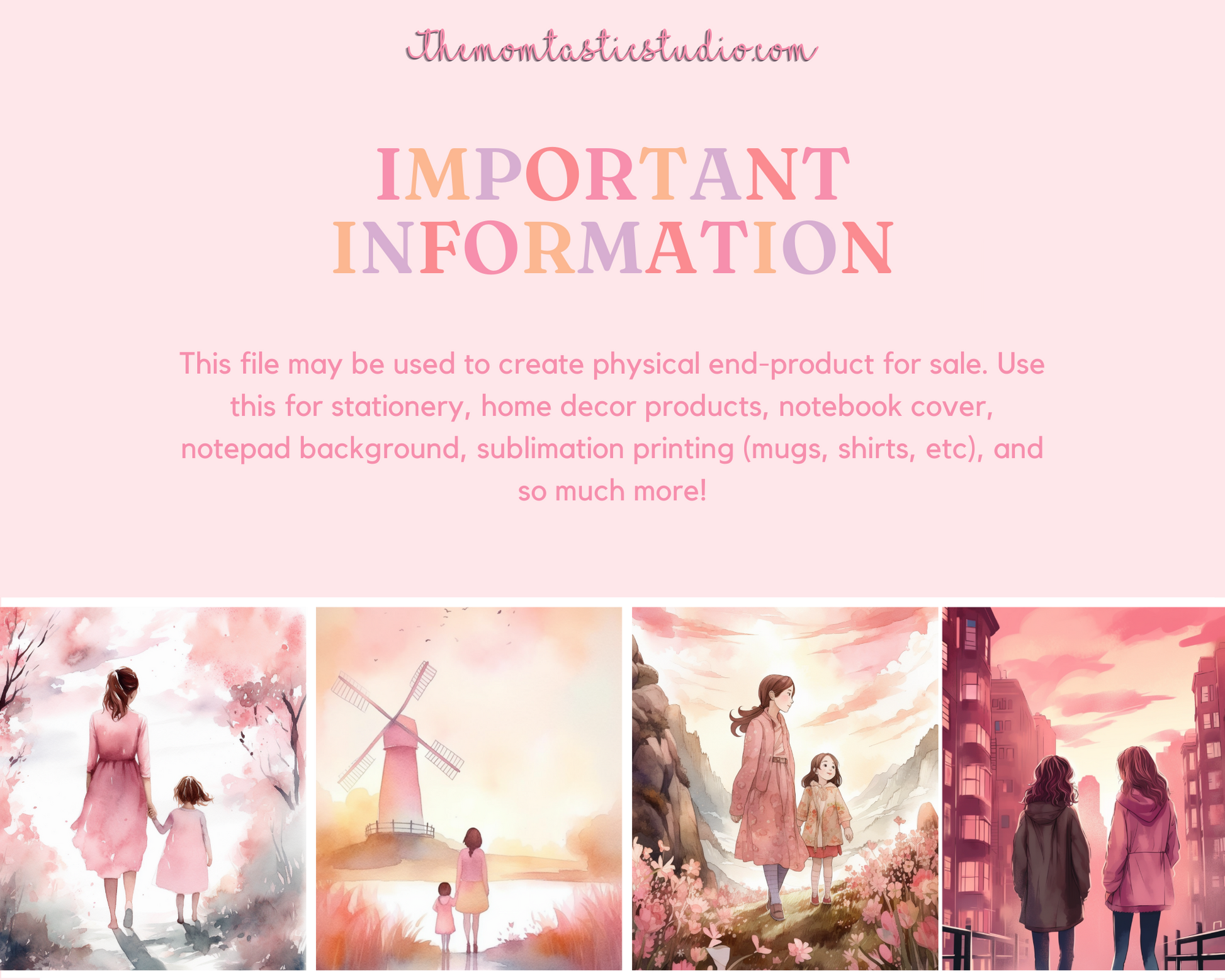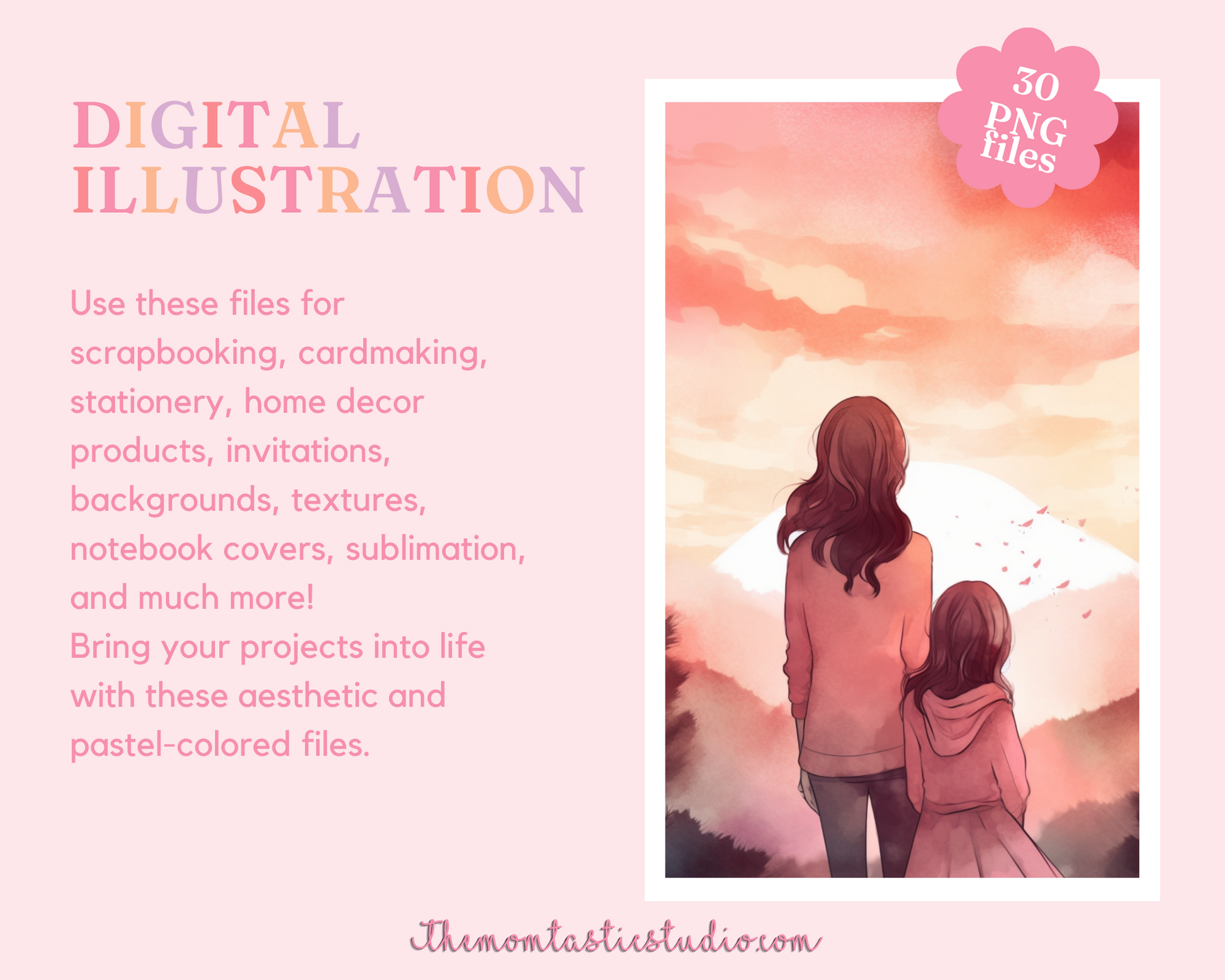 ✨ Celebrate the special bond between mother and daughter with our heartwarming Serenity in Pink: Mother Daughter Illustration collection. Featuring tender scenes of maternal love set against delicate pink hues, these high-resolution digital files are perfect for capturing the unique connection shared by parent and child. Instantly download and start enhancing your work with these touching designs! ✨