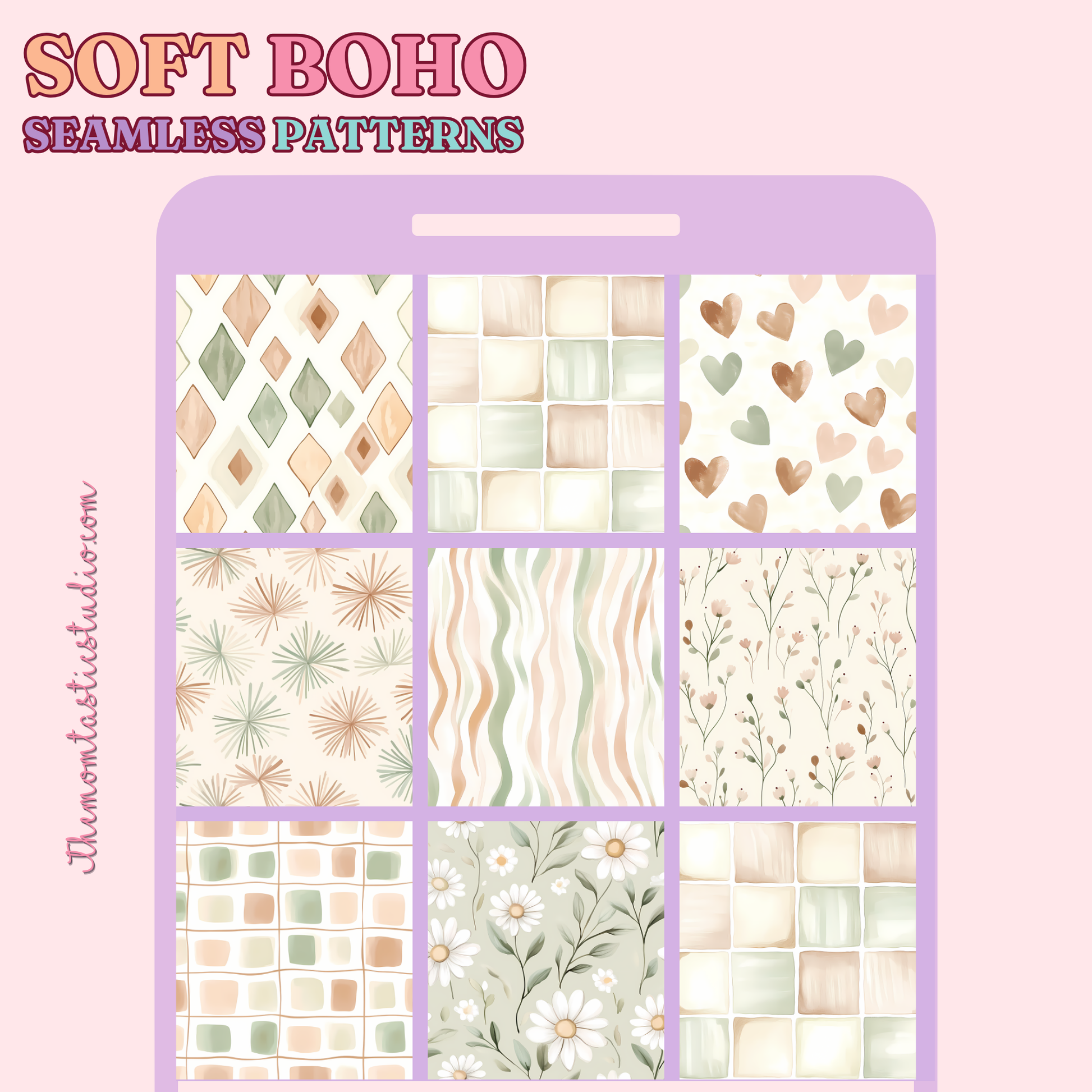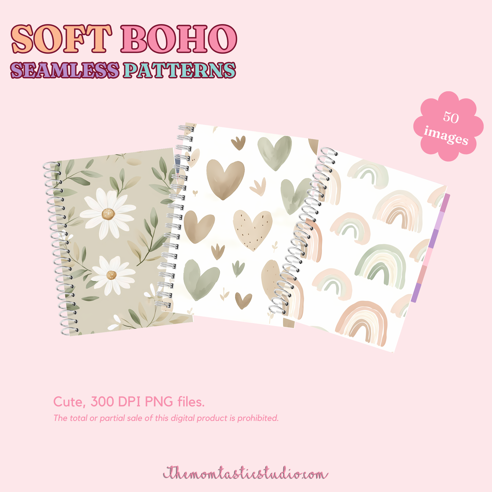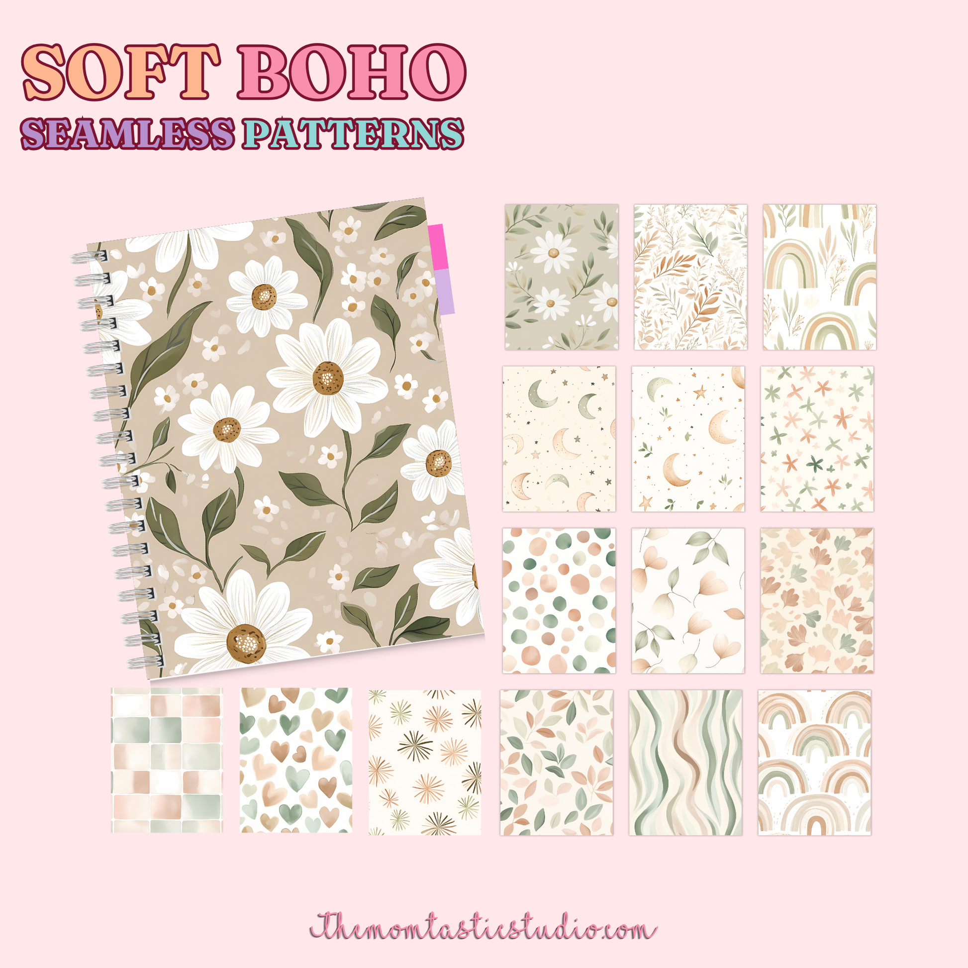 Soft Boho Seamless Patterns for Commercial Use, Digital Paper - 300 DPI