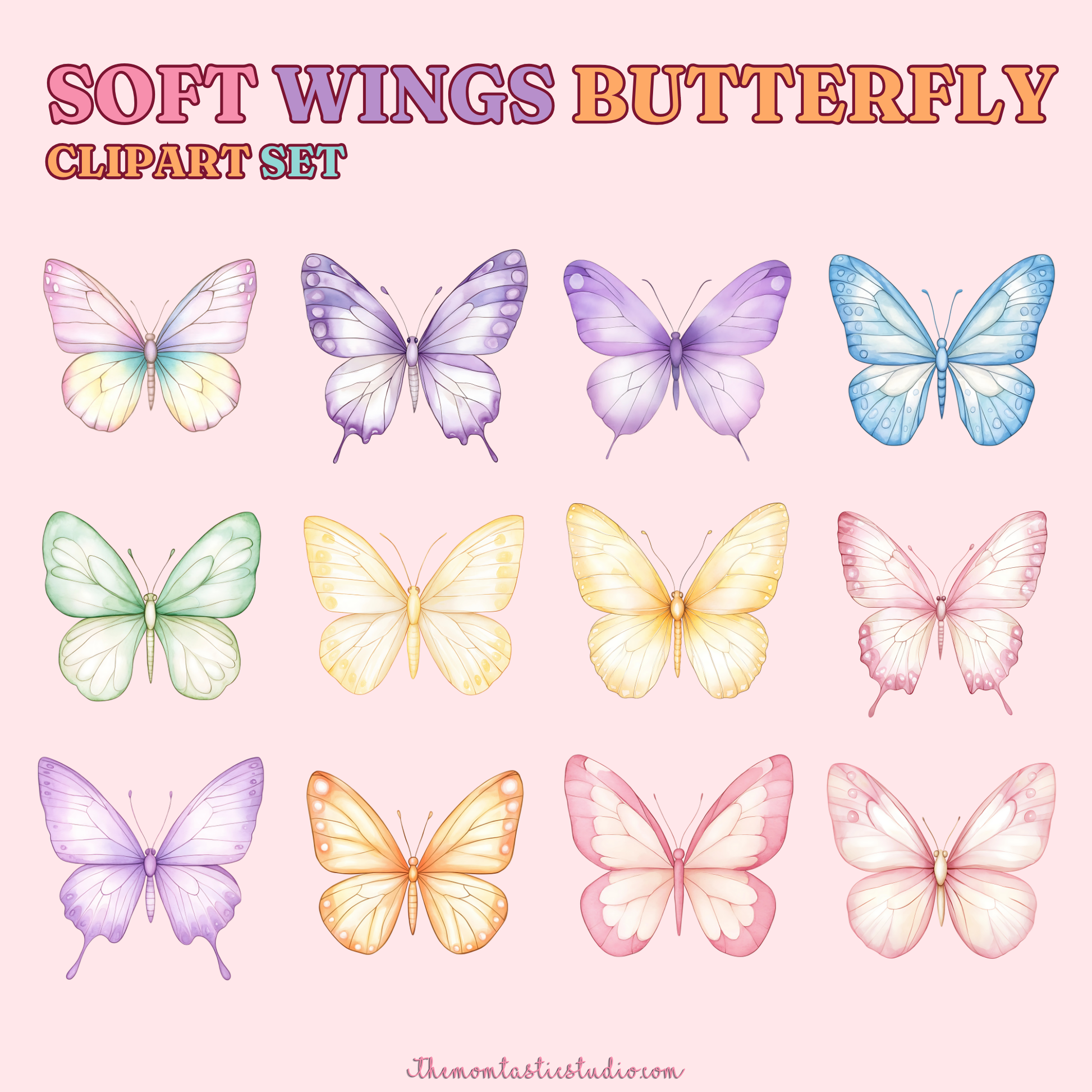 Soft Wings Butterfly Clipart Set - 300 DPI – Instant Download – Commercial Use (Transparent Files)