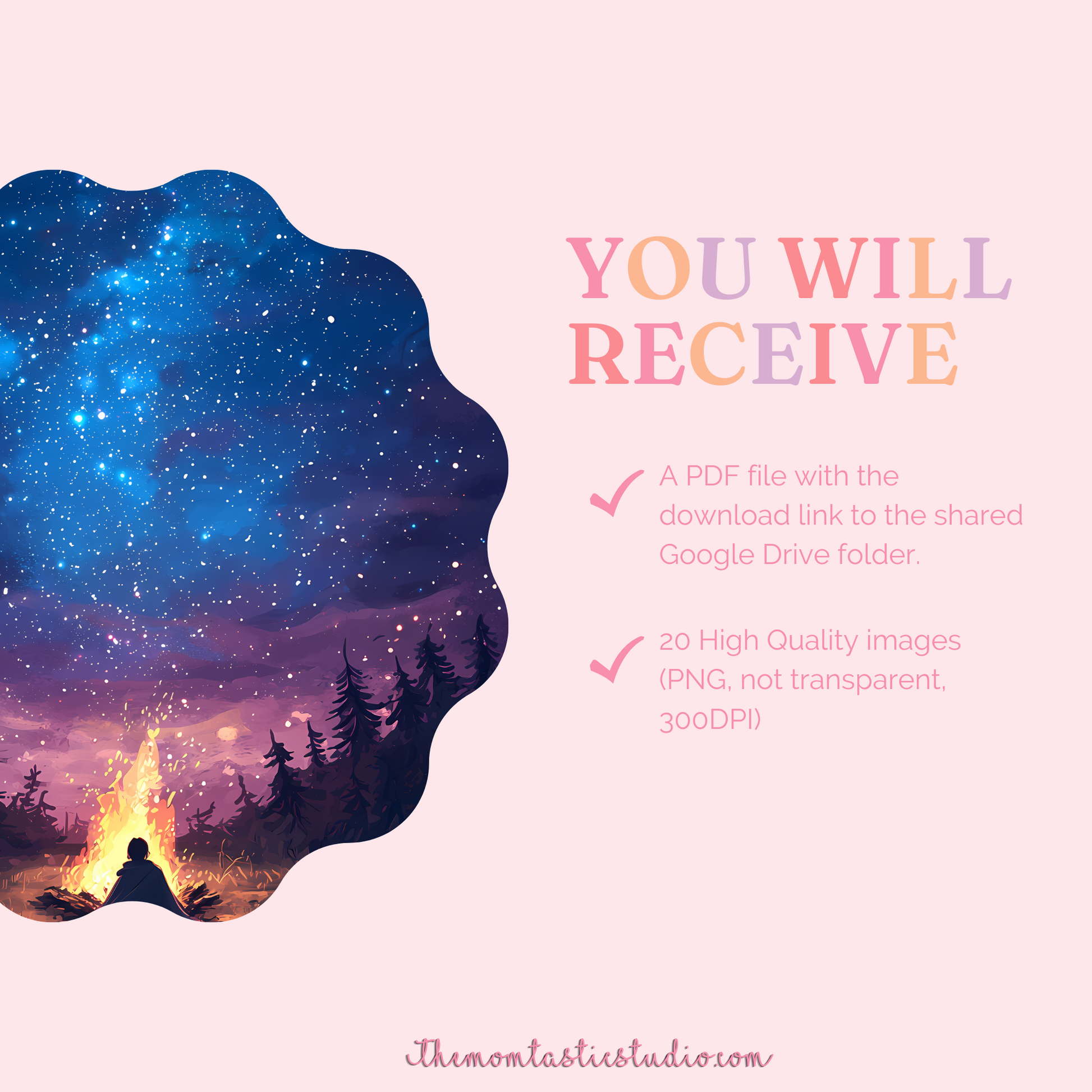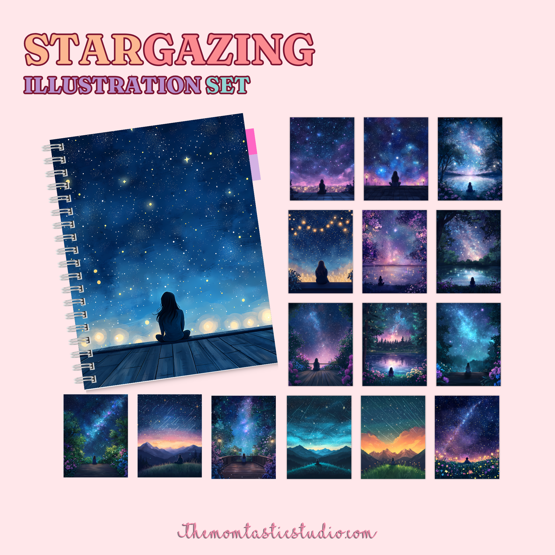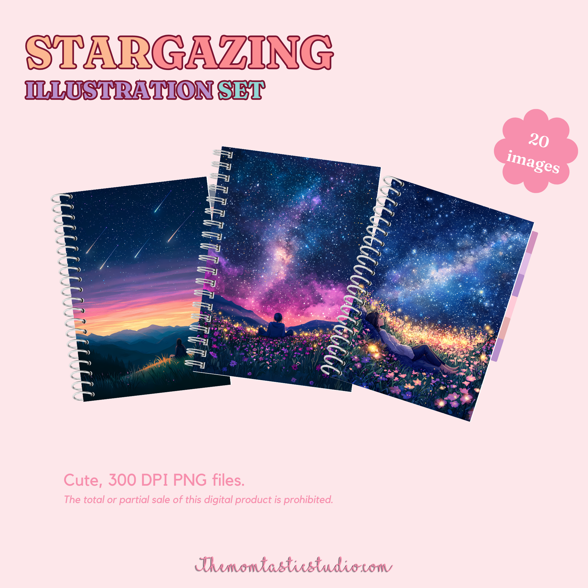 Stargazing Illustration Set - 300 DPI – Instant Download – Commercial Use