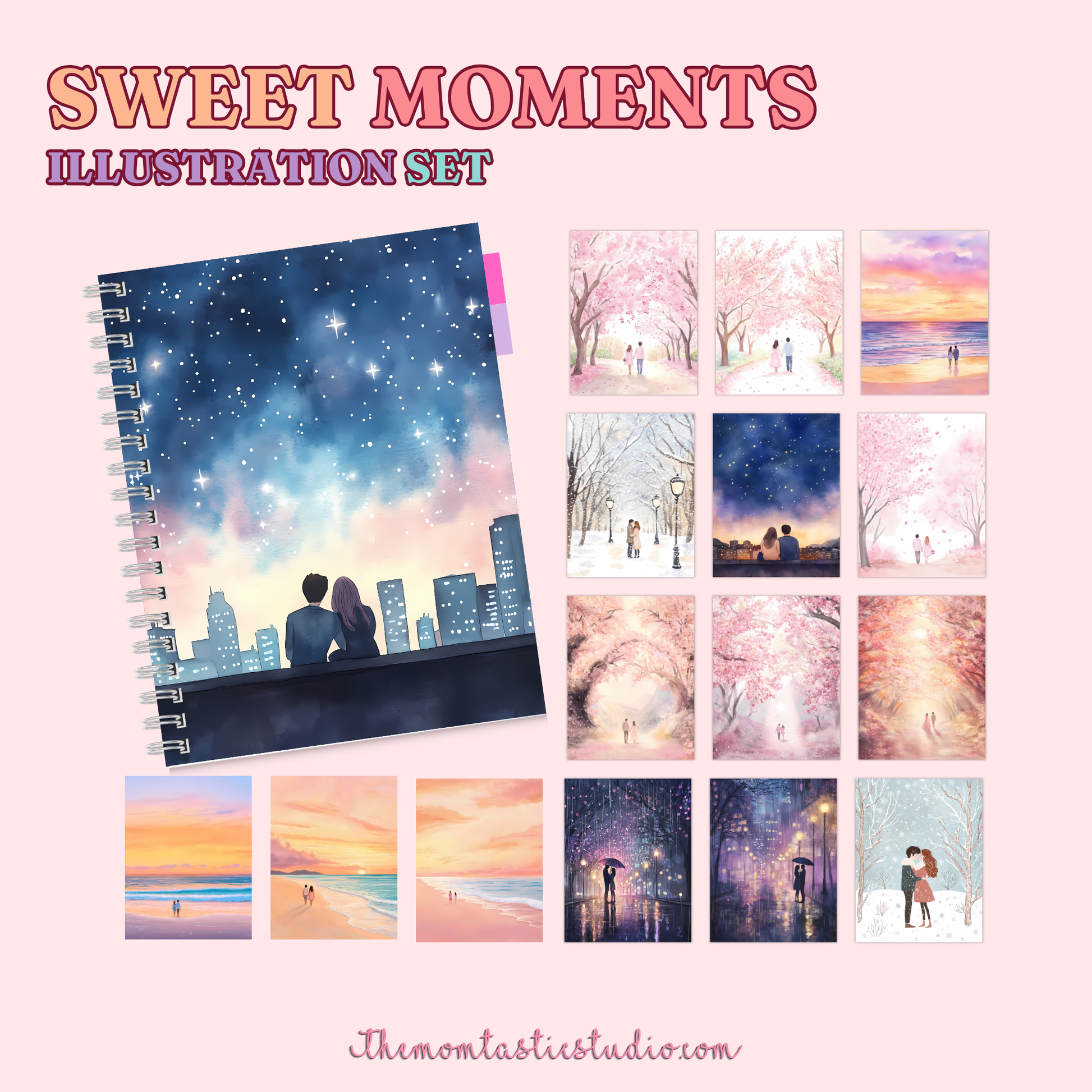 Sweet Moments Illustration Set - 300 DPI – Instant Download – Commercial Use