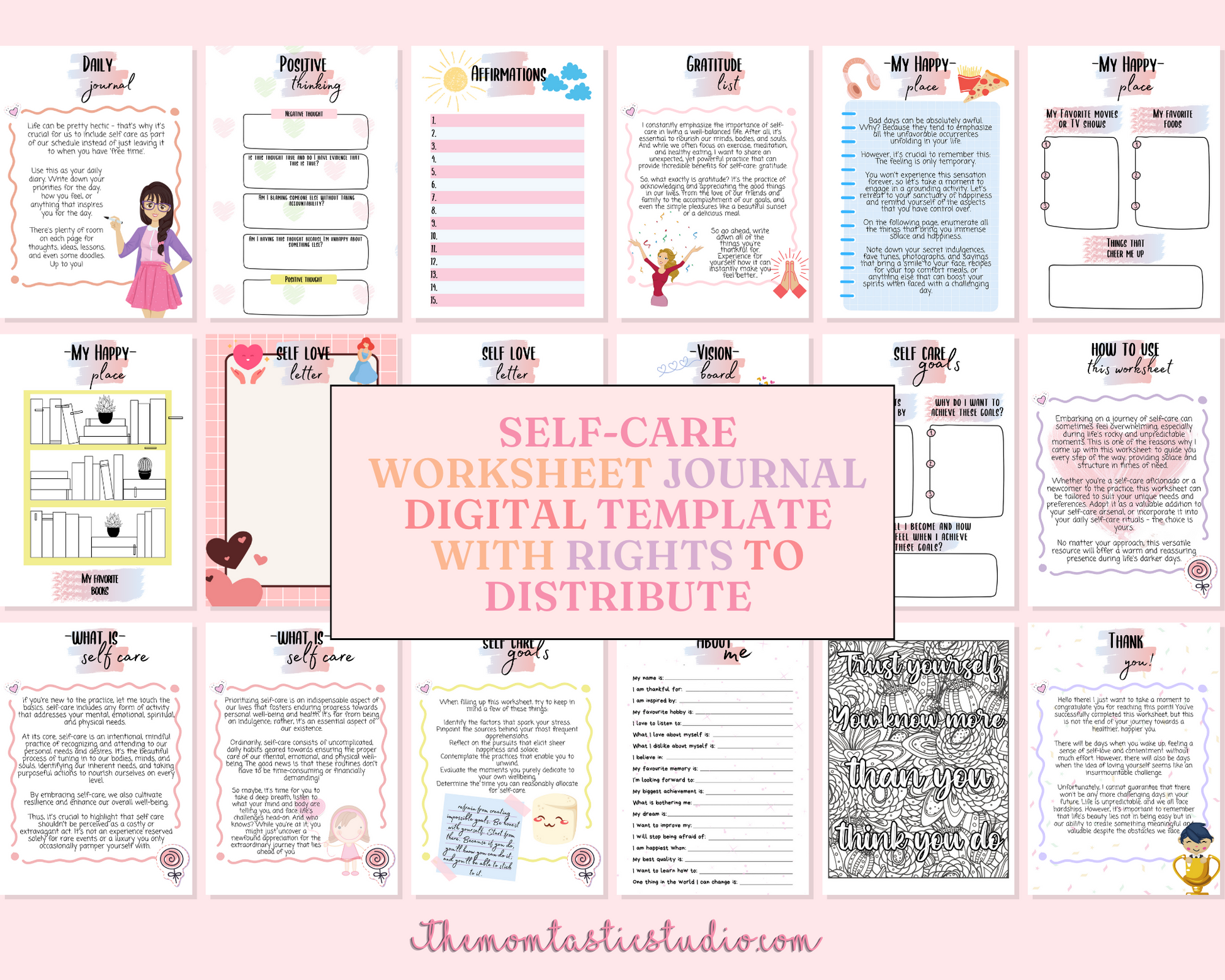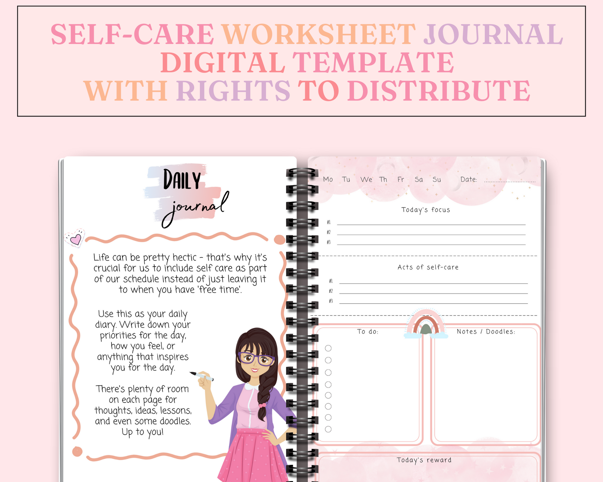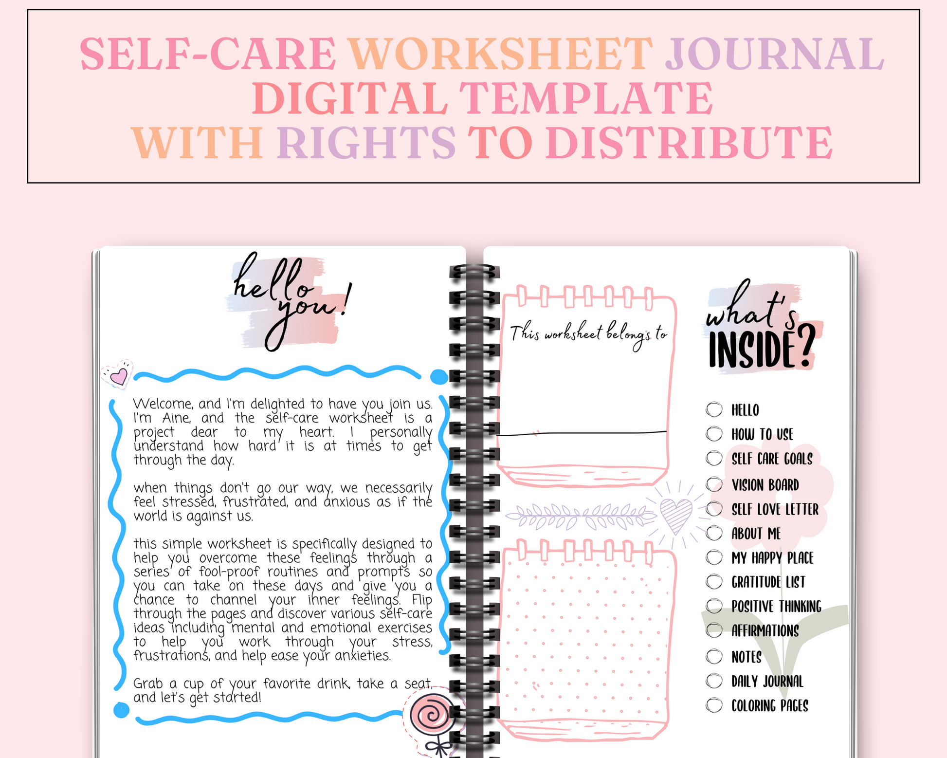 The Self-Care Worksheet - Printable Template - Canva Editable - Rights to Distribute - Commercial License