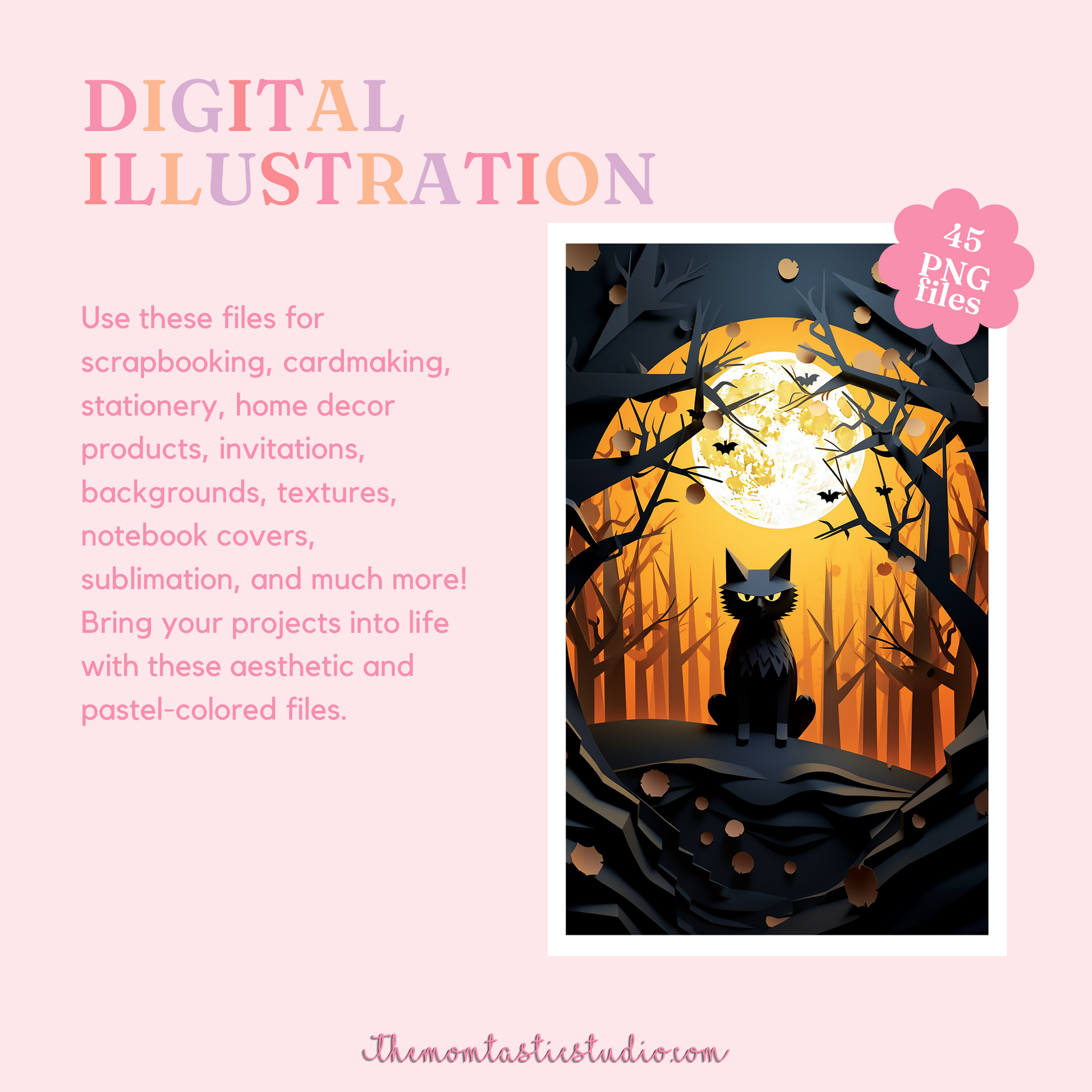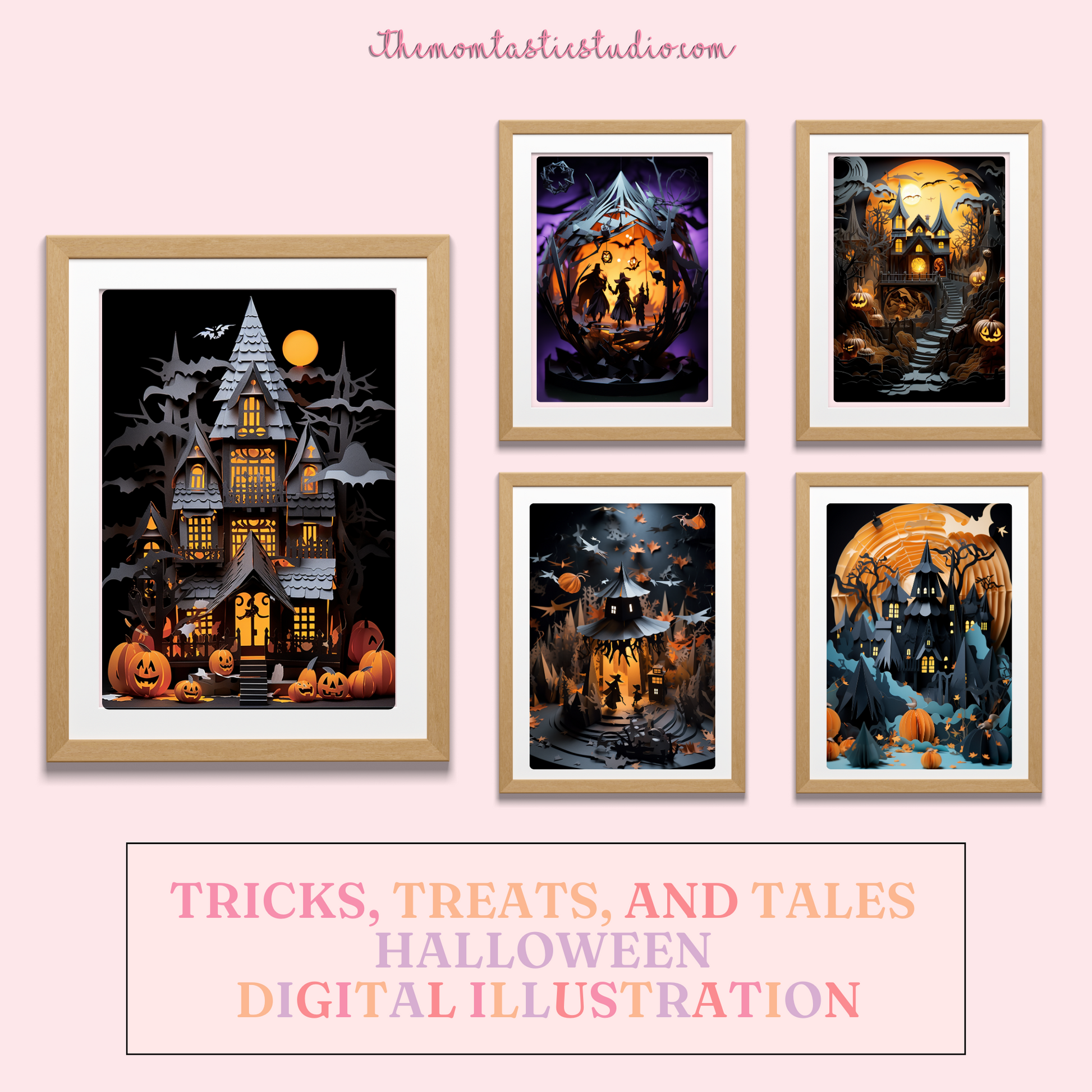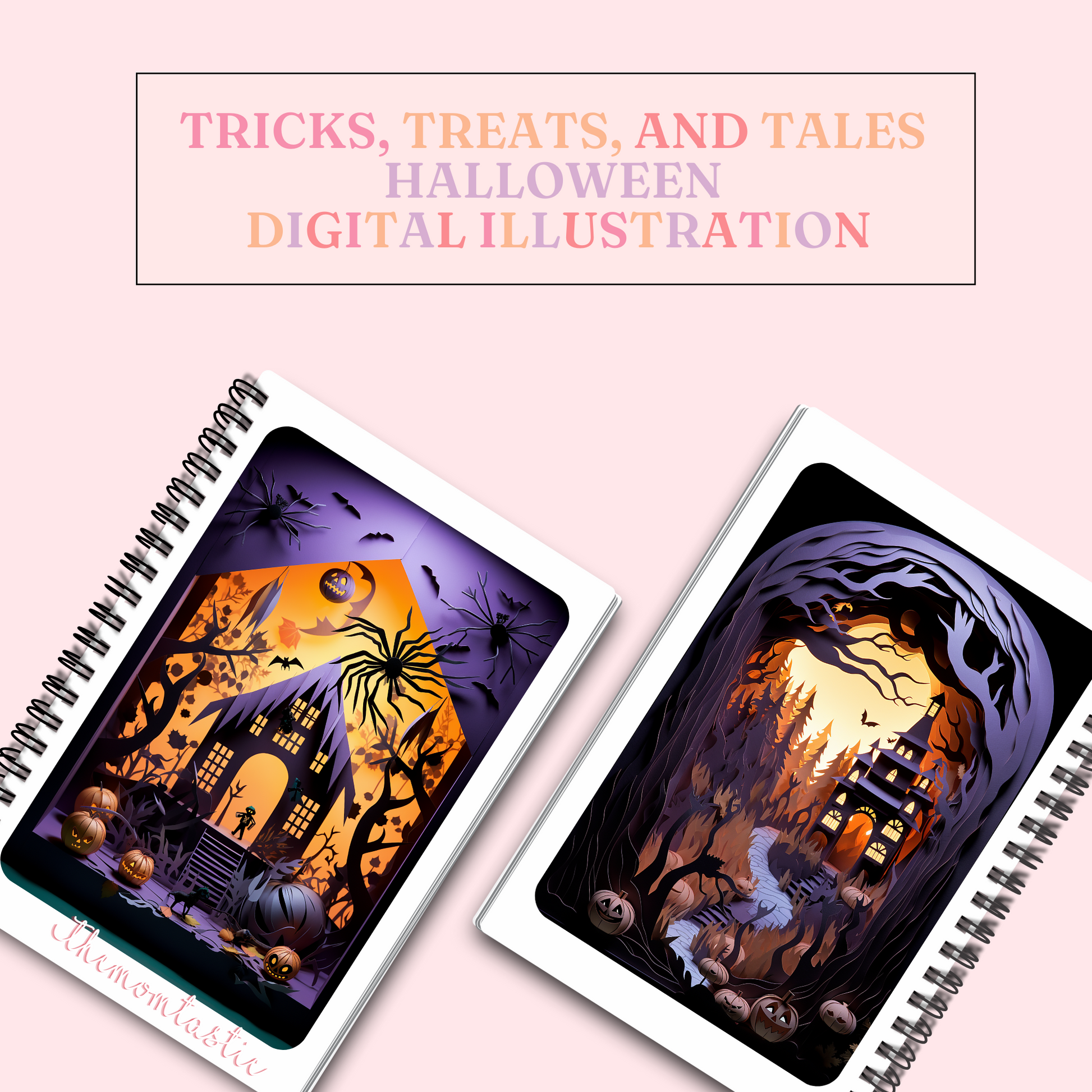 Tricks, Treats and Tales - Halloween Digital Illustration | Commercial Use | Spooky | For Notebooks, Chipbags, Sublimation