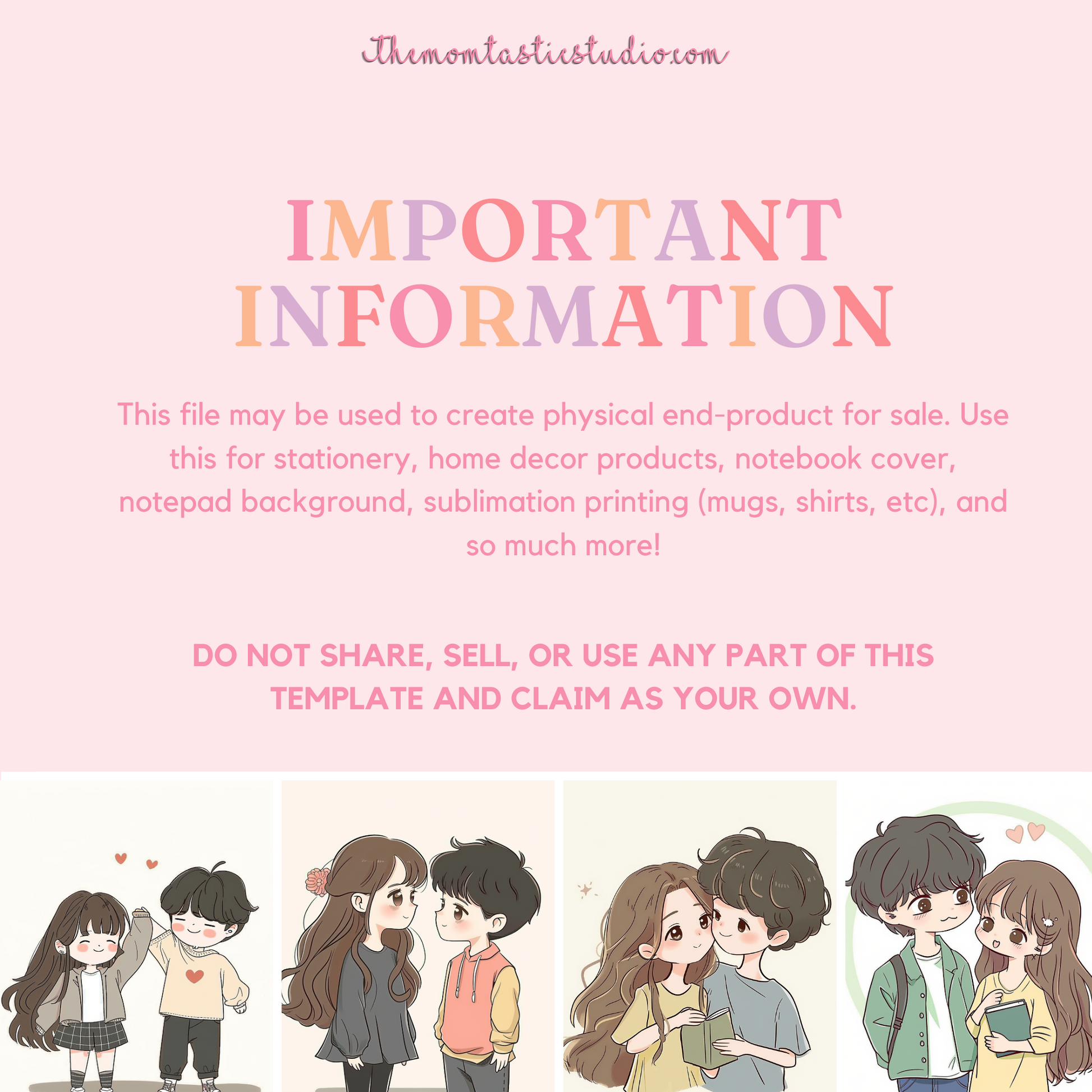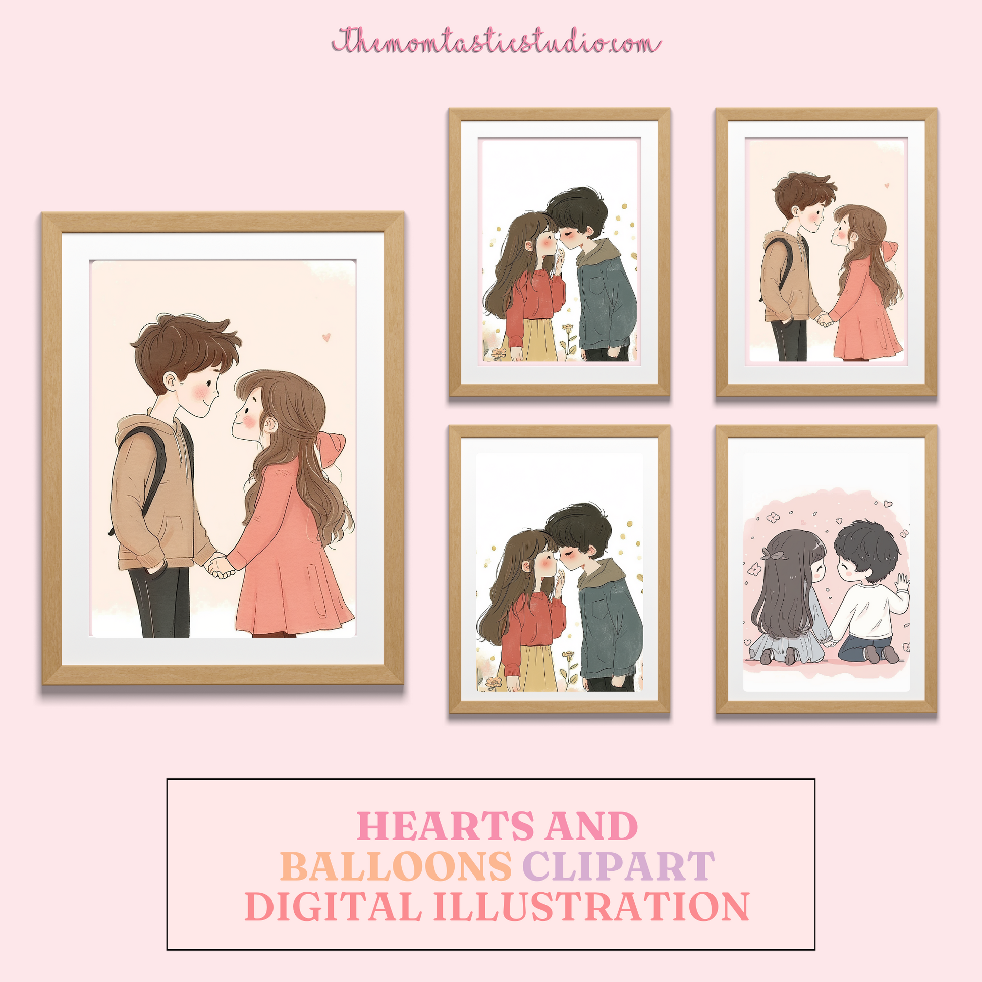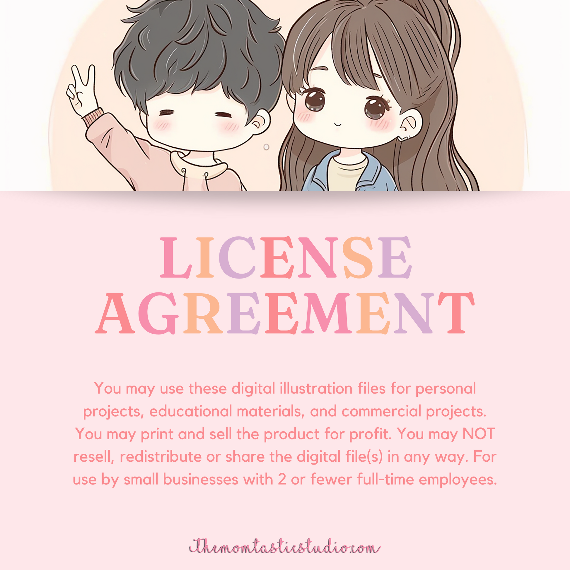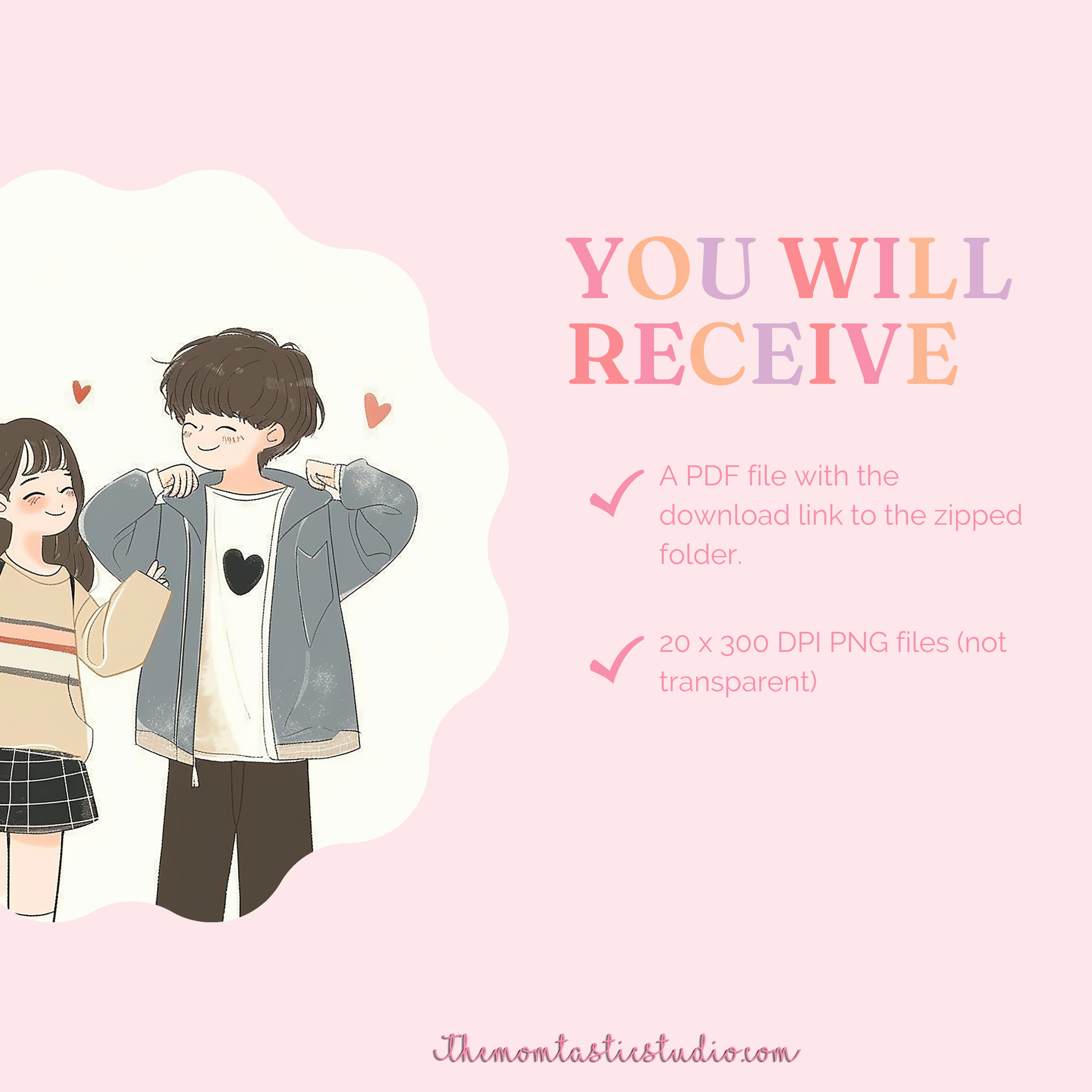 VDay Cute Chibi Couple Digital Illustration 300DPI – Instant Download – Commercial Use