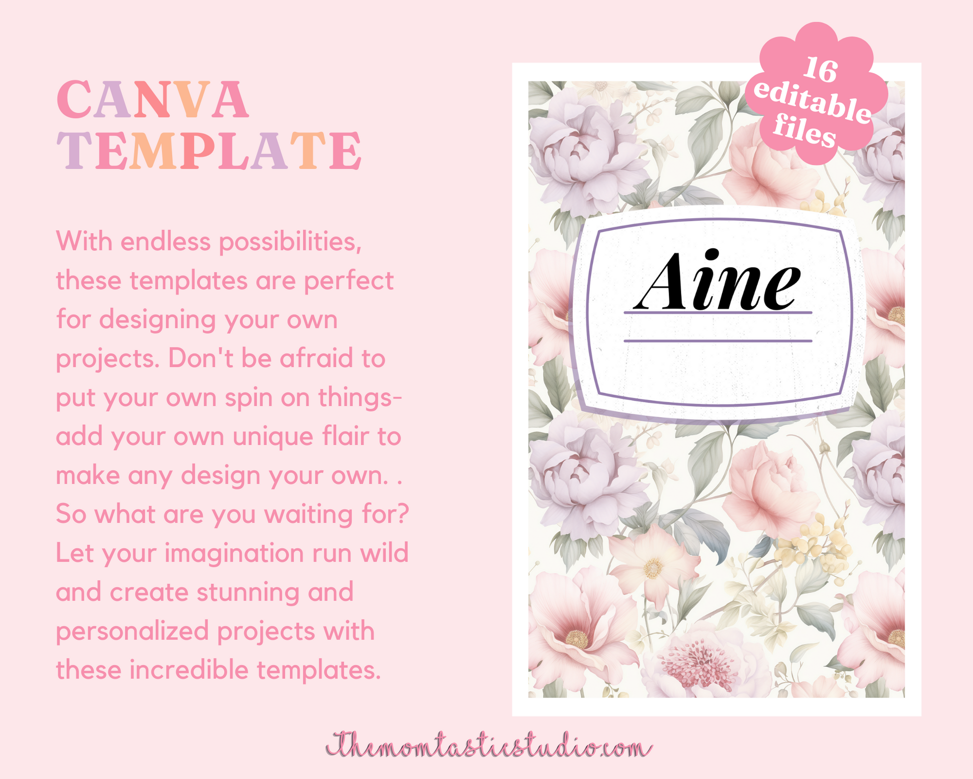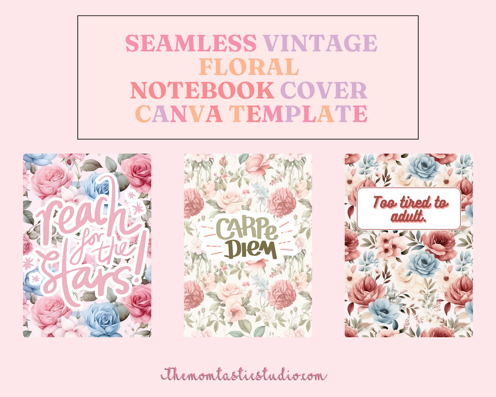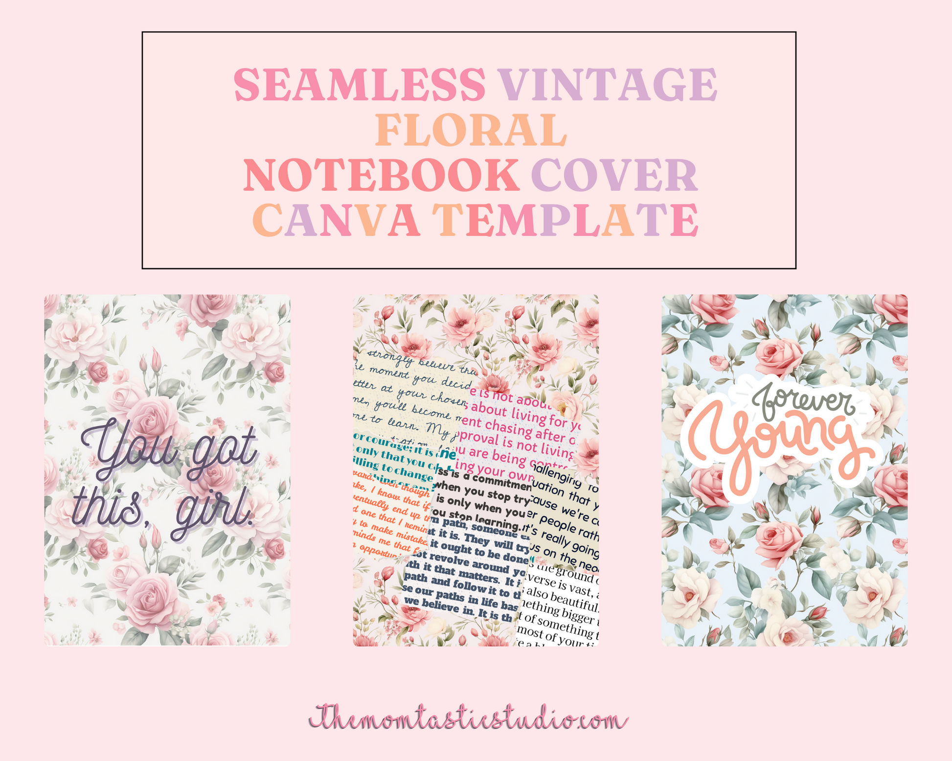 Vintage Floral Notebook Cover Canva Template - 16 Pages - Commercial Use