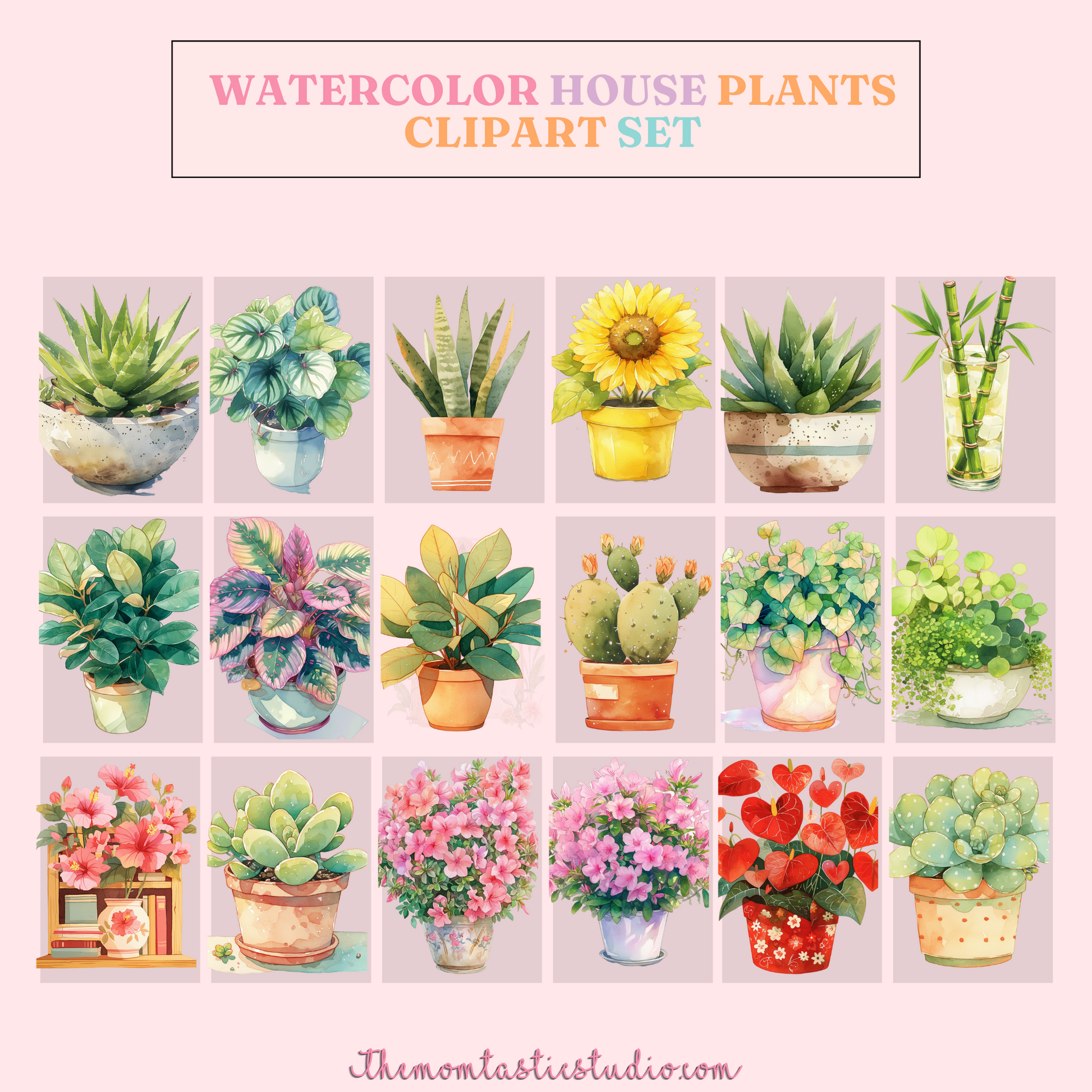 Watercolor House Plants – Clipart Set - Planner Sticker - High-Quality PNG - Transparent Background - Commercial Use