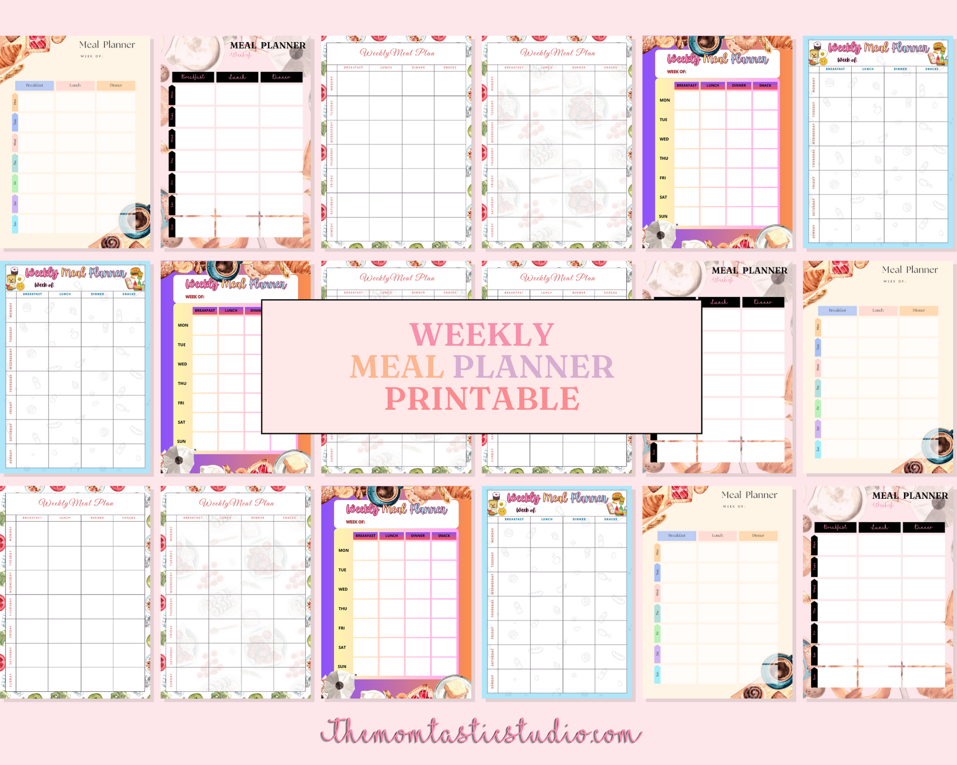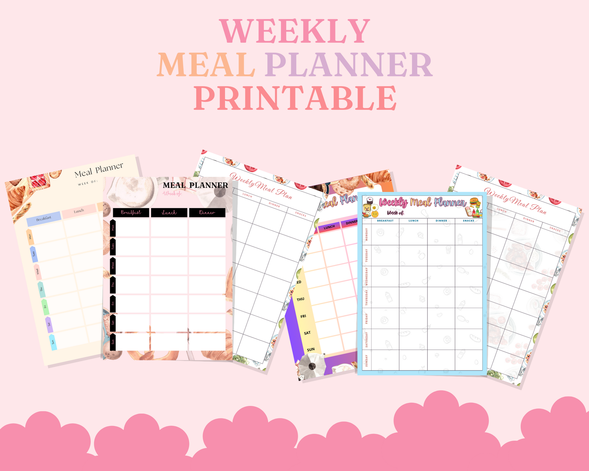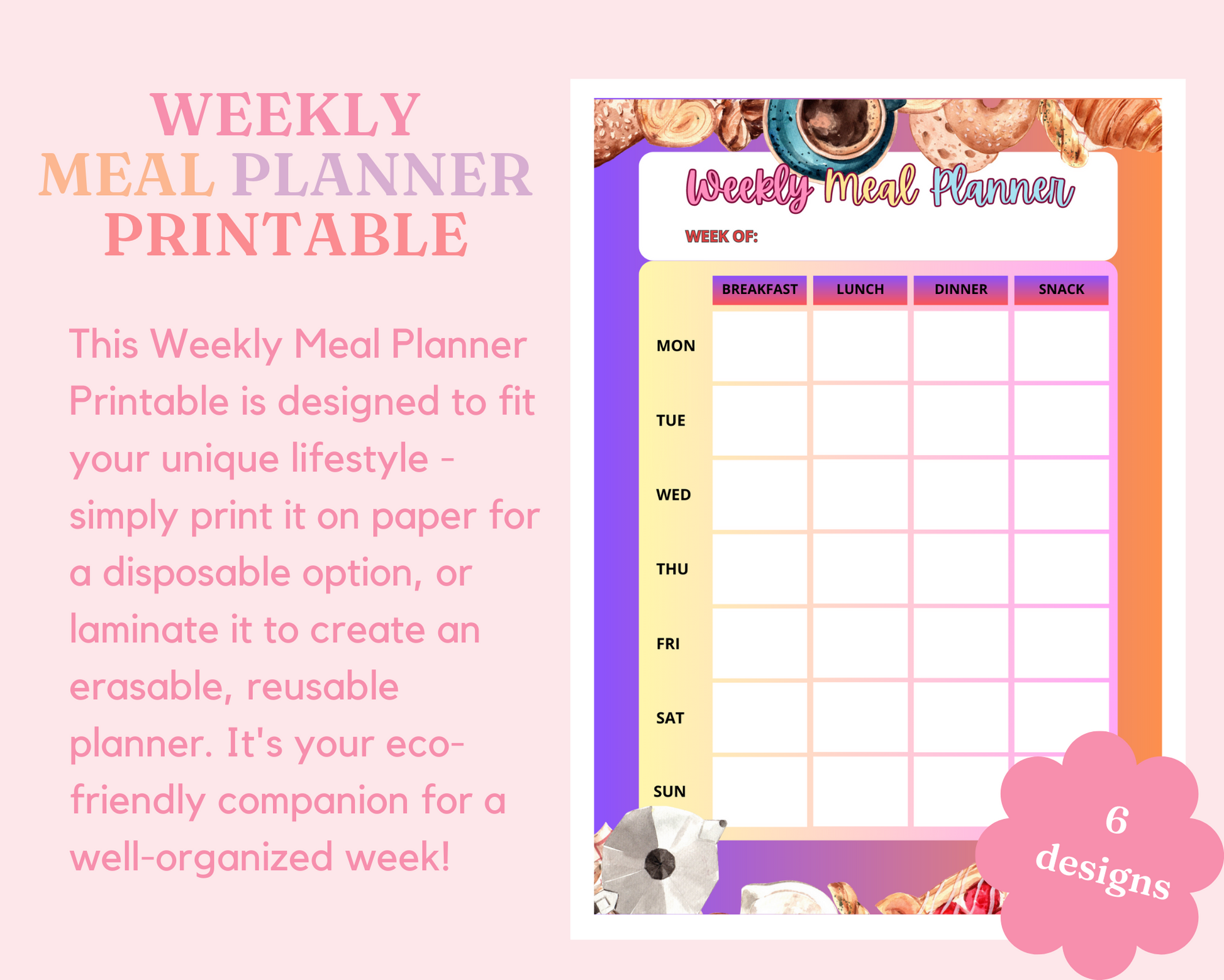 Weekly Meal Planner Printable – A4 Size – 6 Stylish Designs – PDF, PNG, and Canva Template – Commercial License