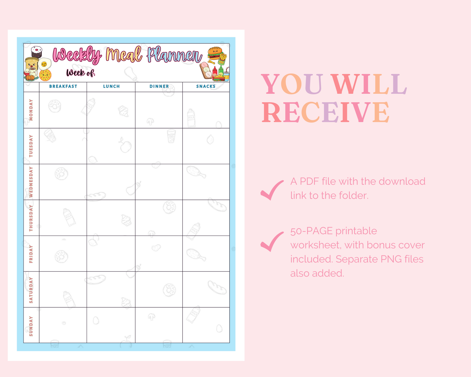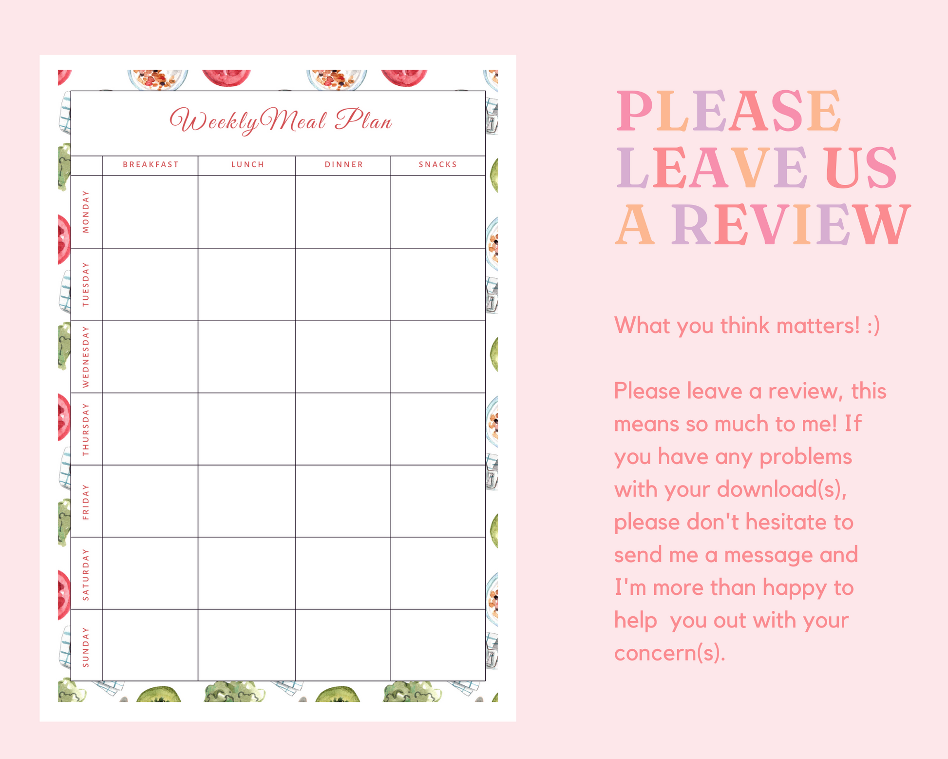 • Commercial License allows you to create and sell your own meal planning resources