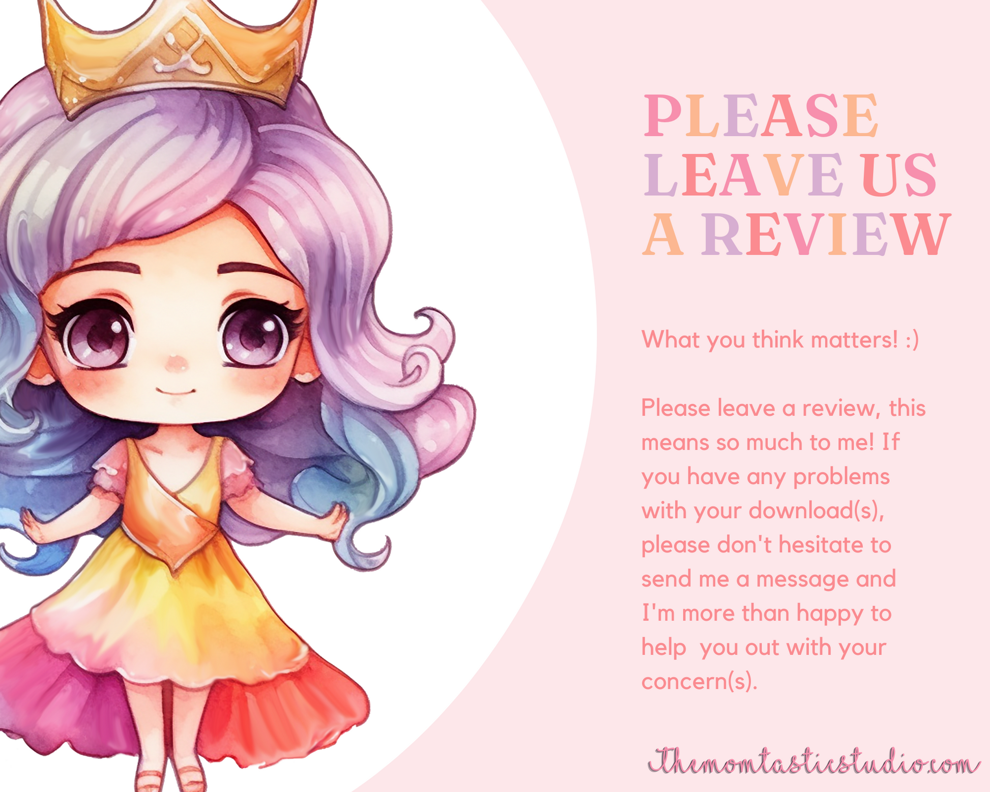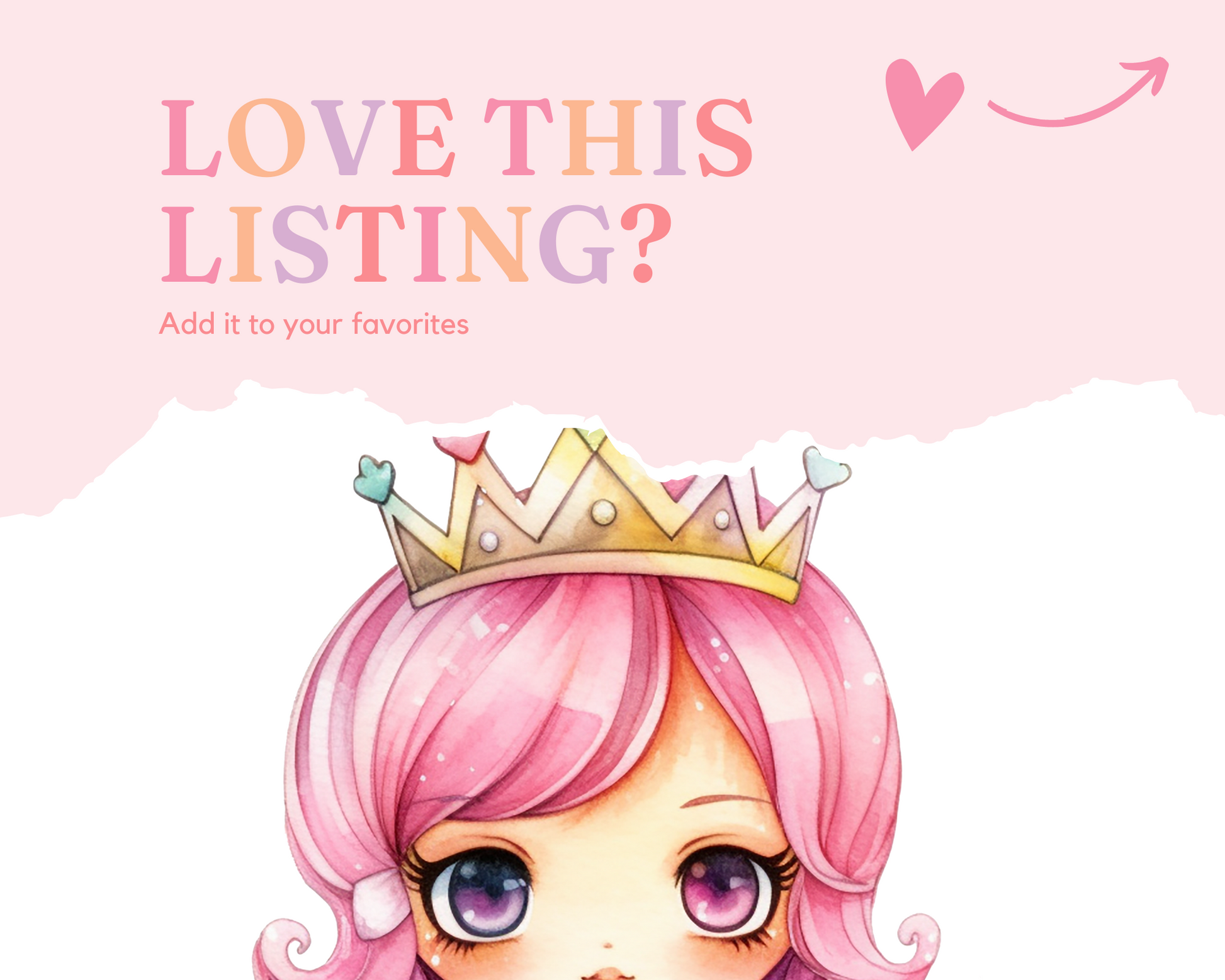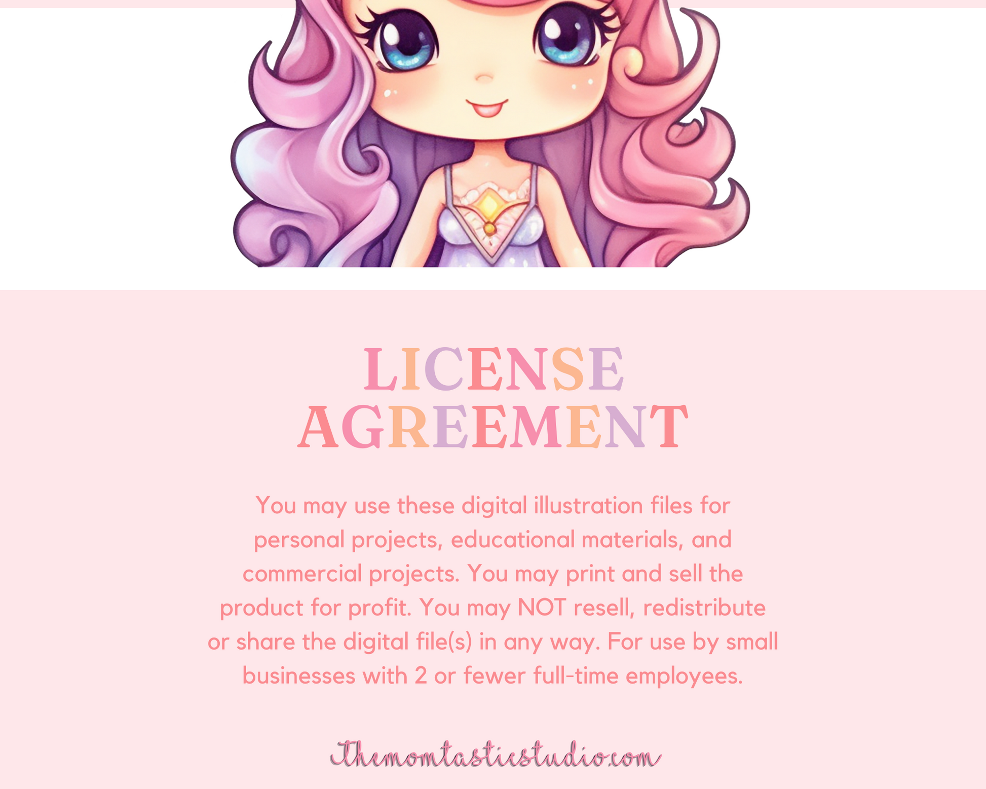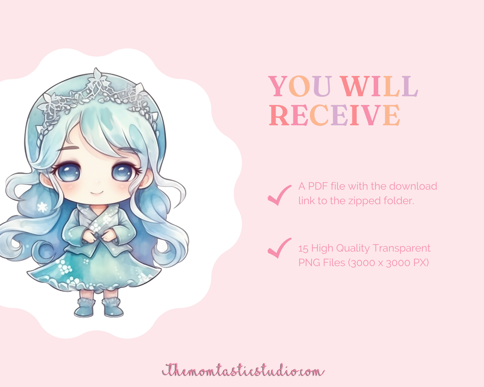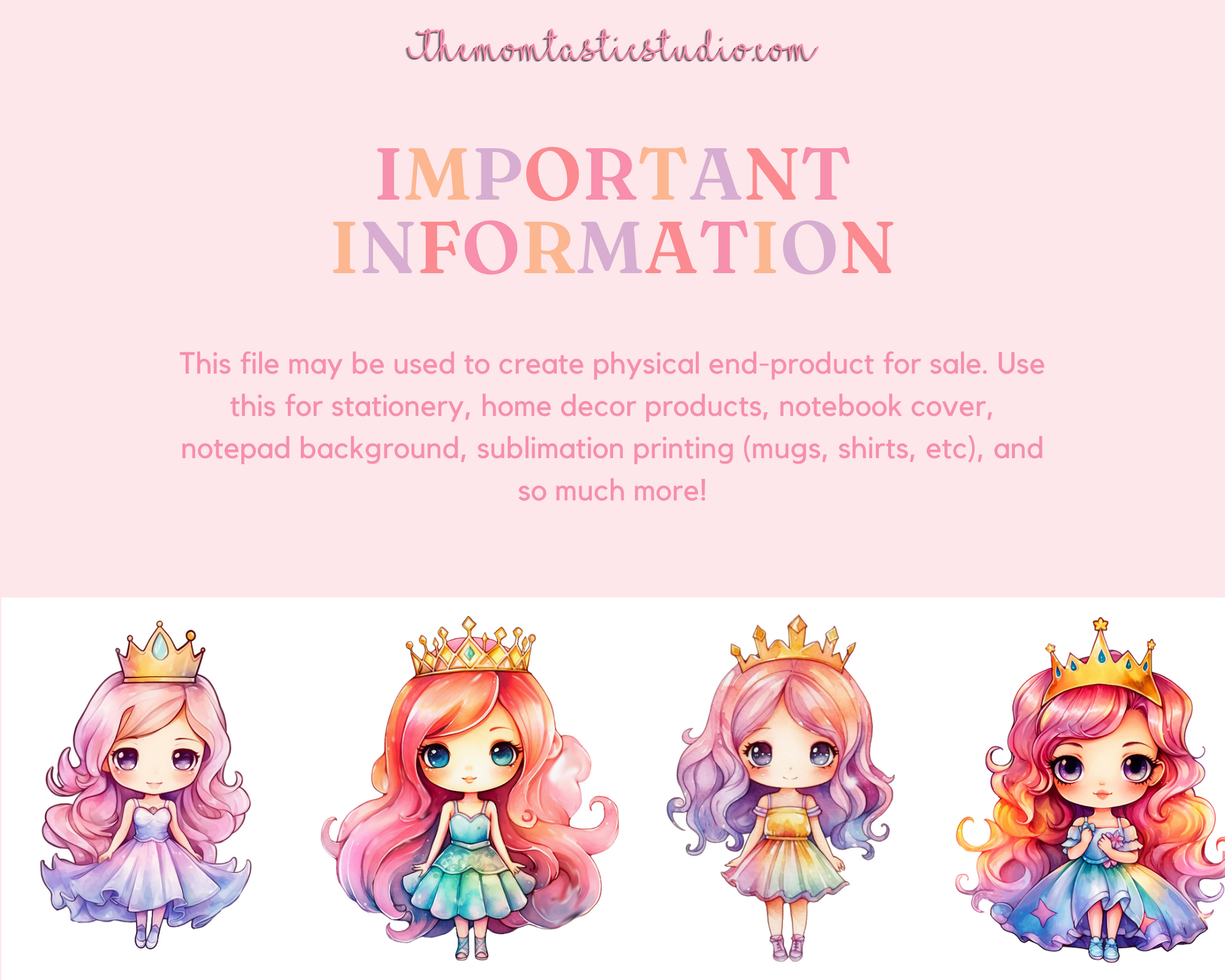 Whimsical Chibi Princesses Sticker Clipart – Instant Download – High-Quality PNG - Transparent Background - Commercial Use