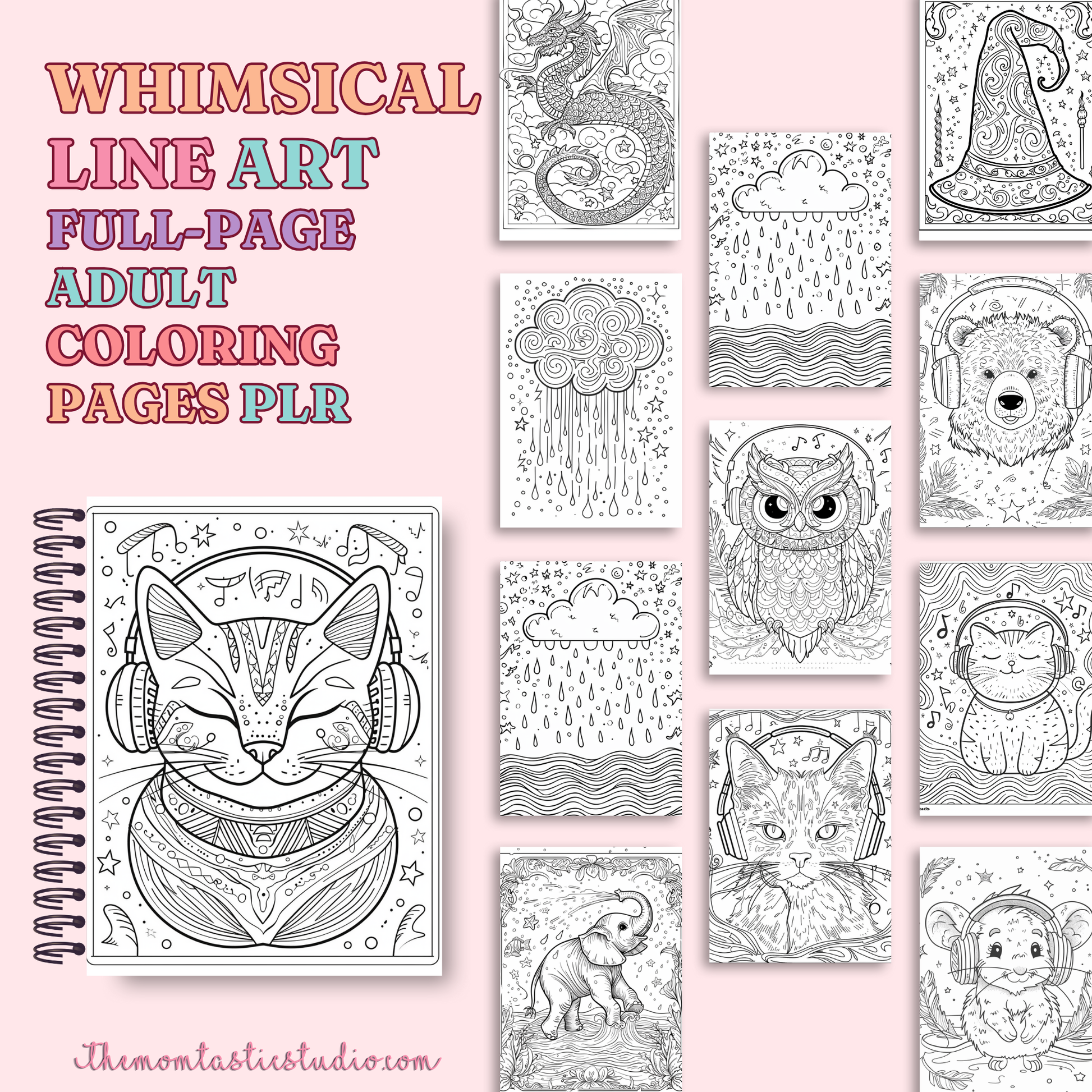 Whimsical Line Art Coloring Pages – Instant Download – PLR (Rights to Resell)