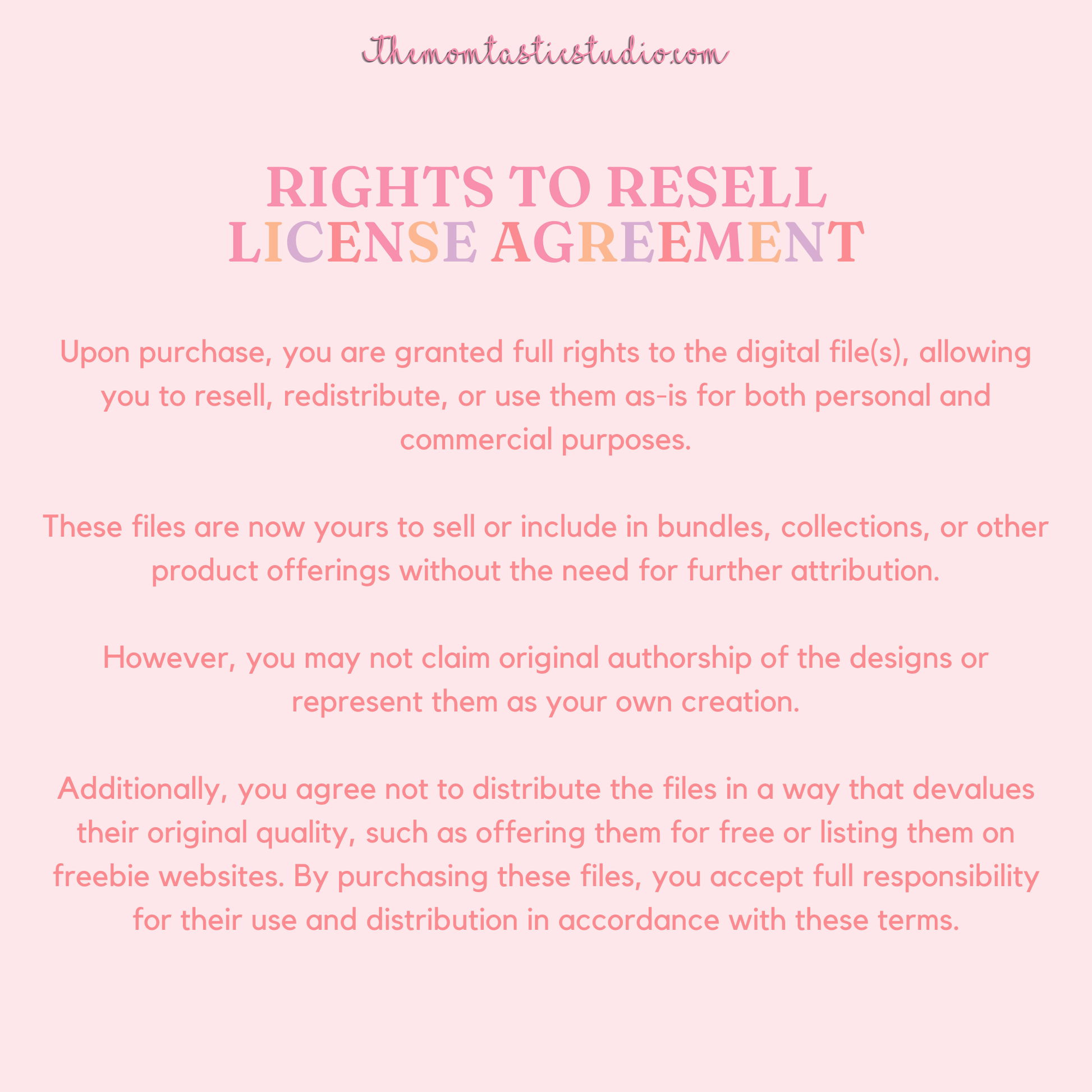 Upon purchase, you are granted full rights to the digital file(s), allowing you to resell, redistribute, or use them as-is for both personal and commercial purposes.