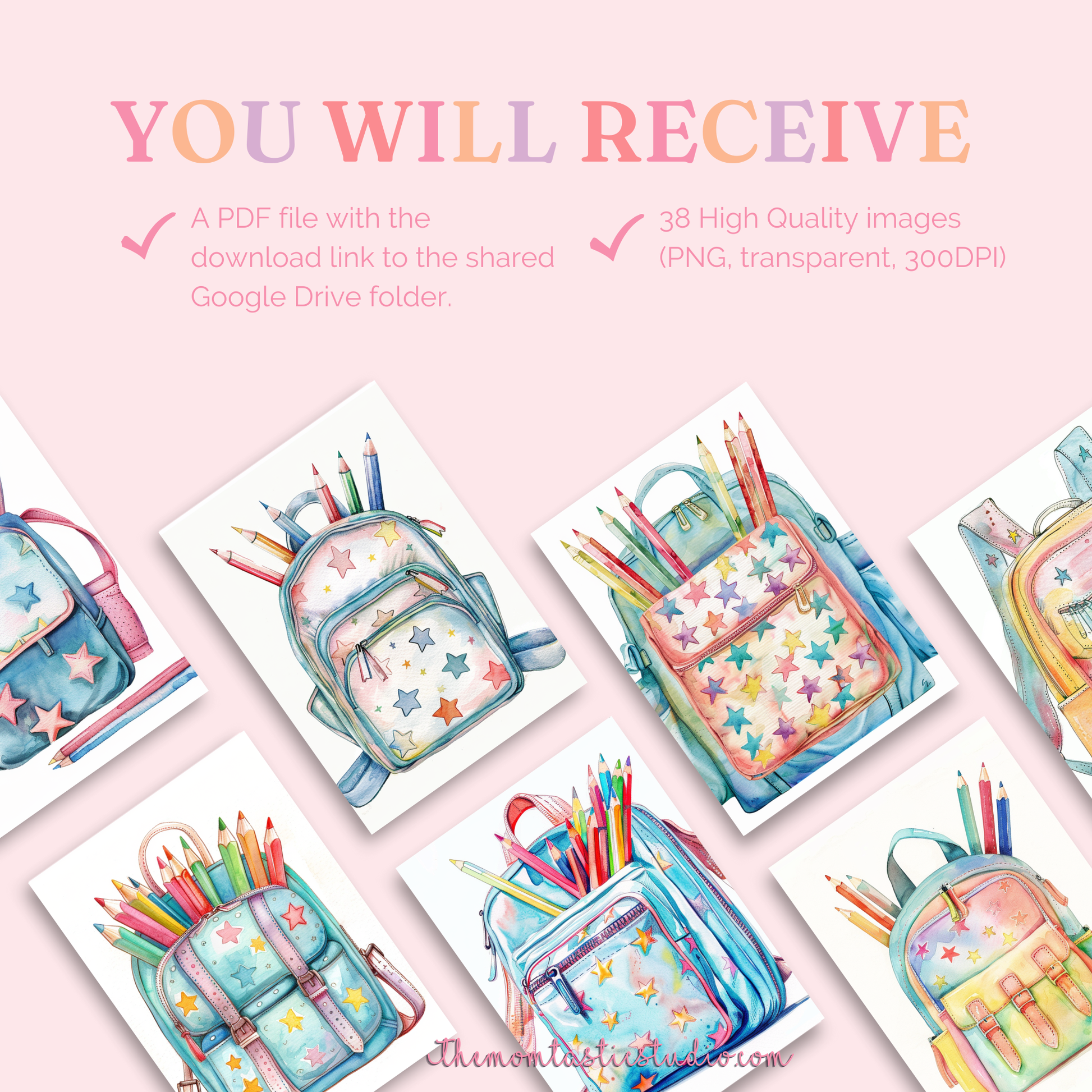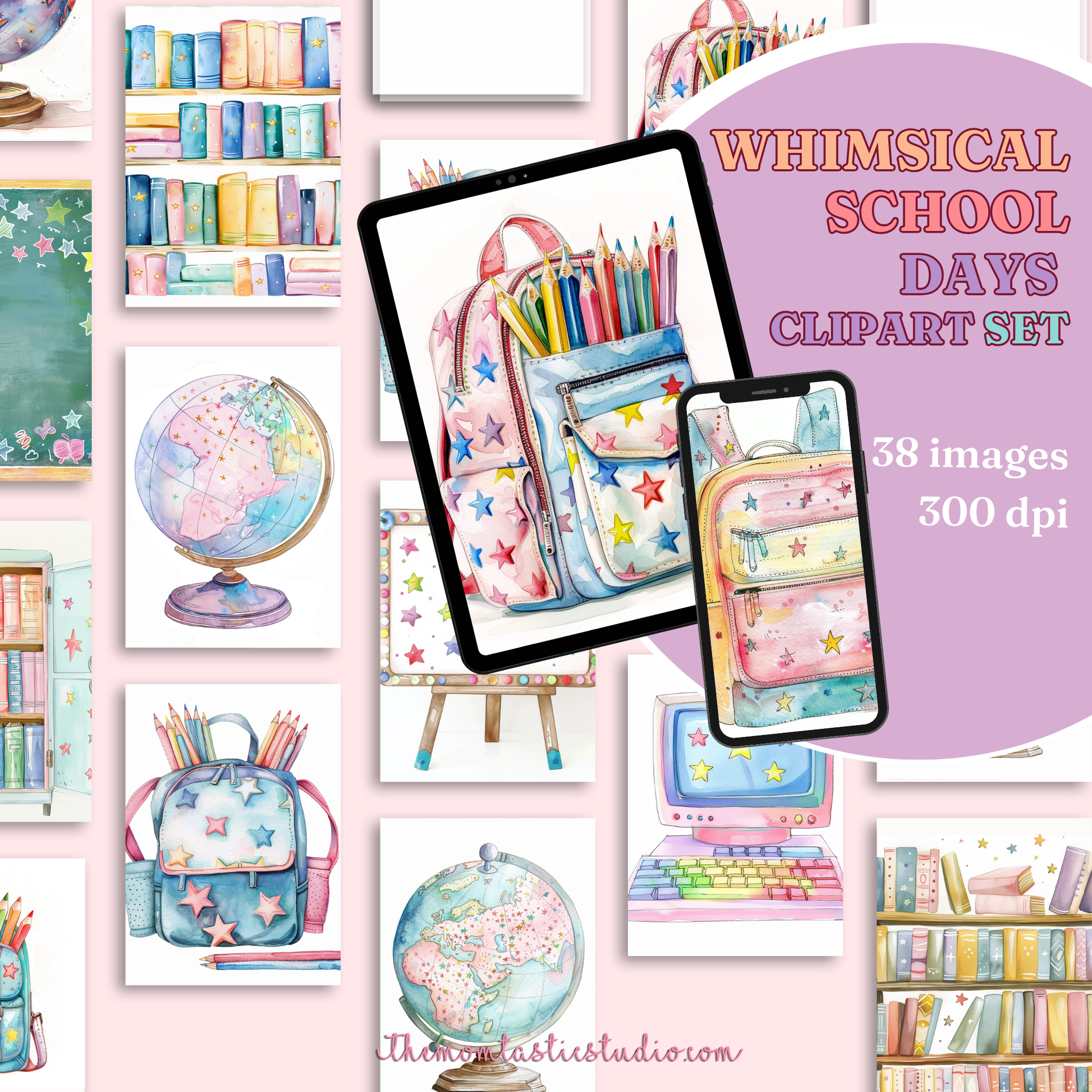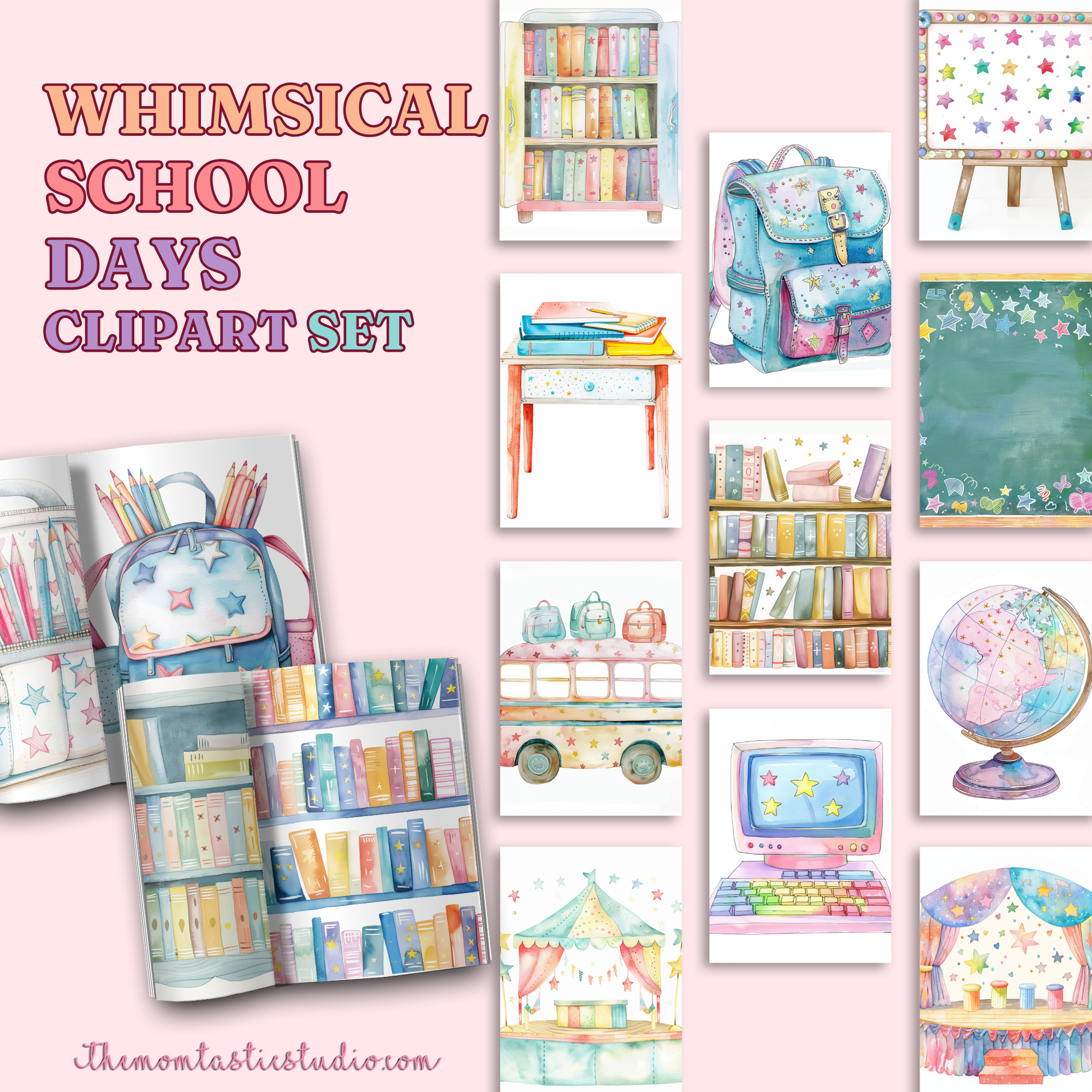 Whimsical School Days Clipart Set – Instant Download – 300 DPI - Commercial Use (Transparent PNG)