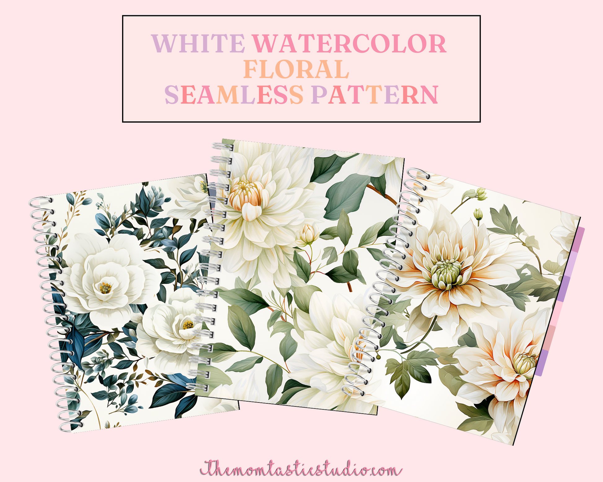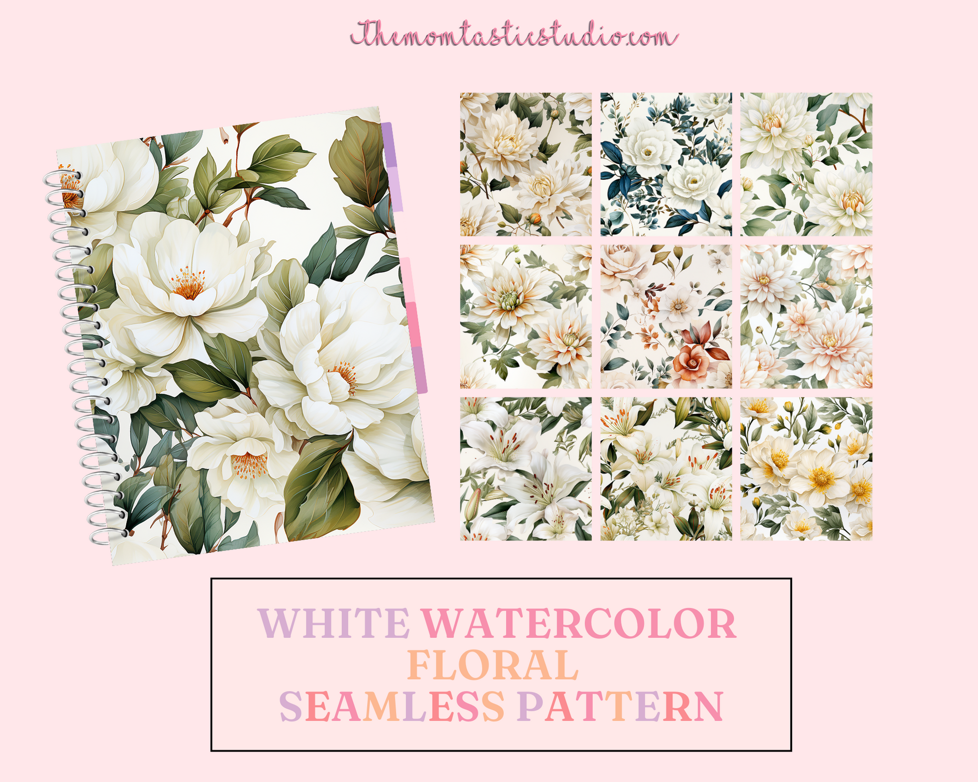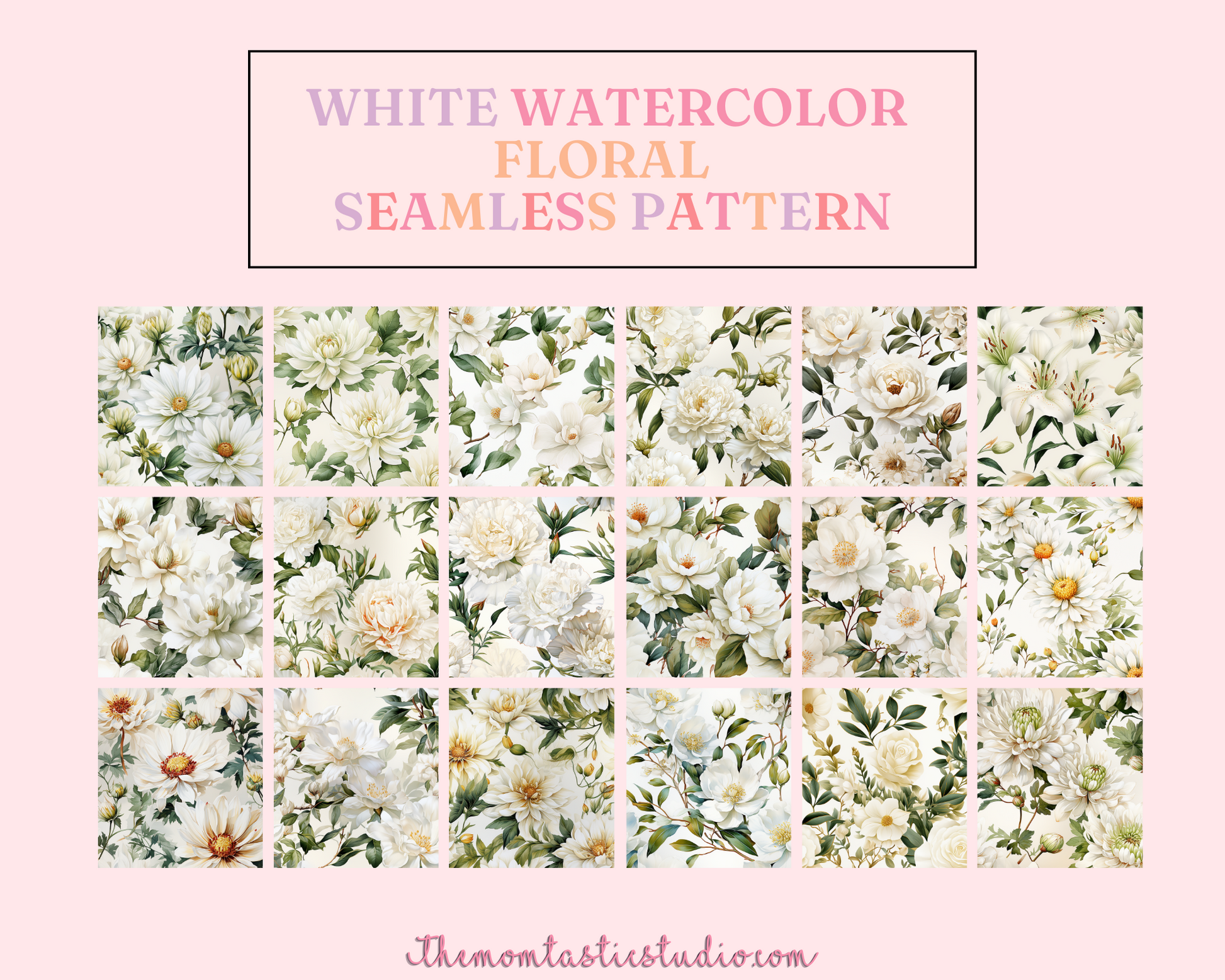 White Watercolor Floral Seamless Pattern, Watercolor Pattern for Commercial Use