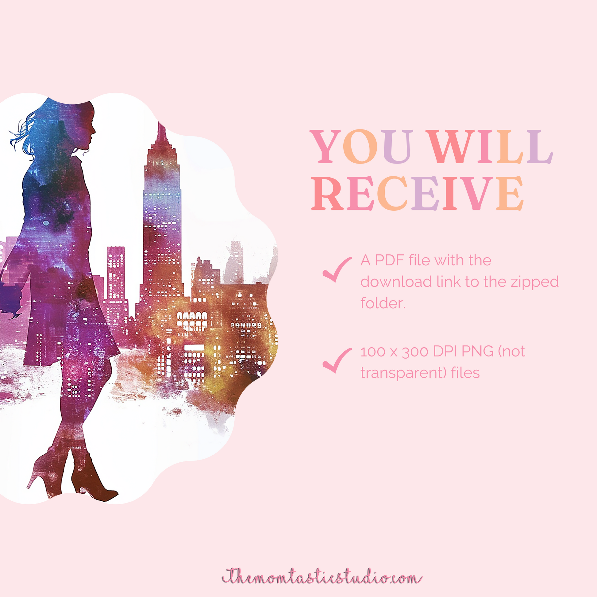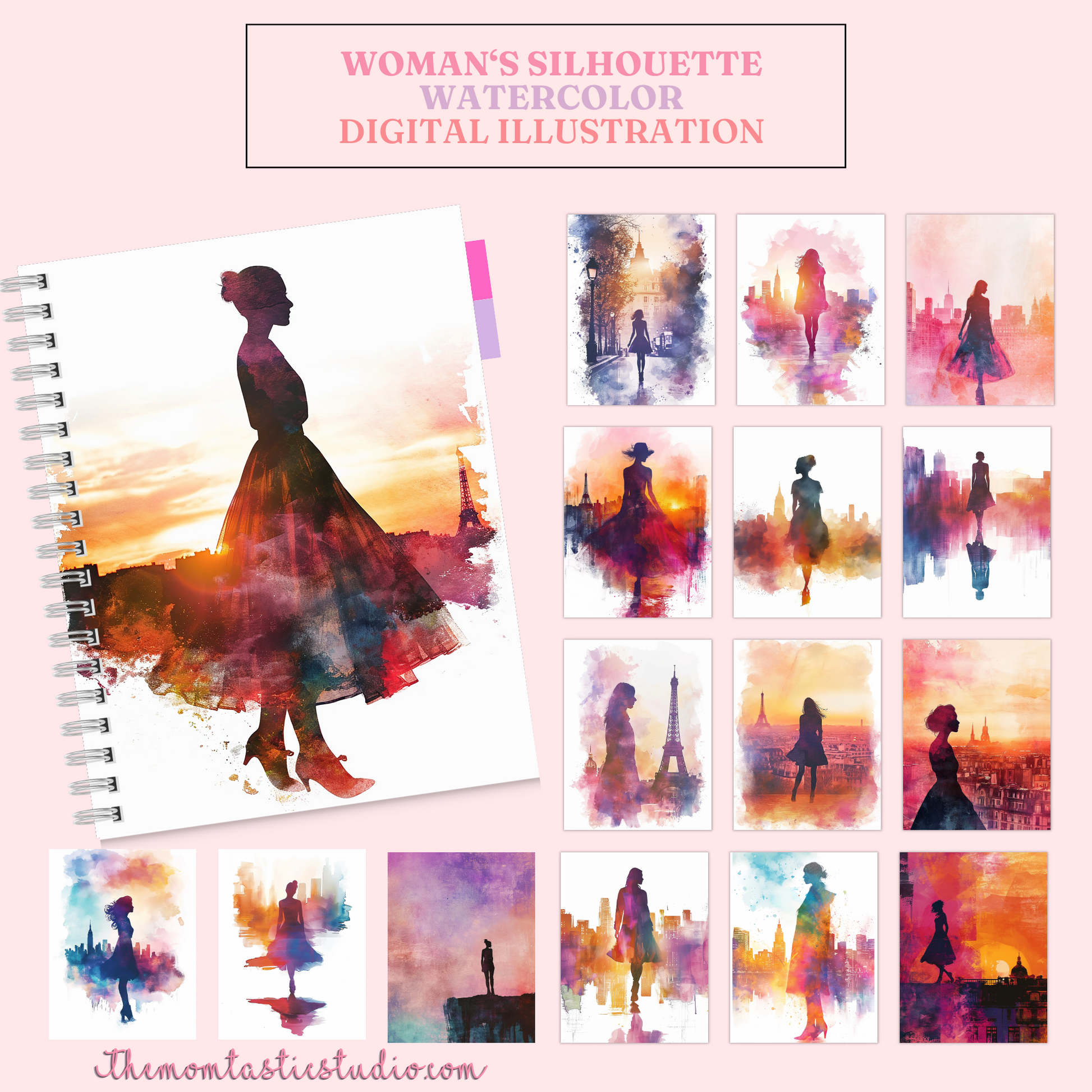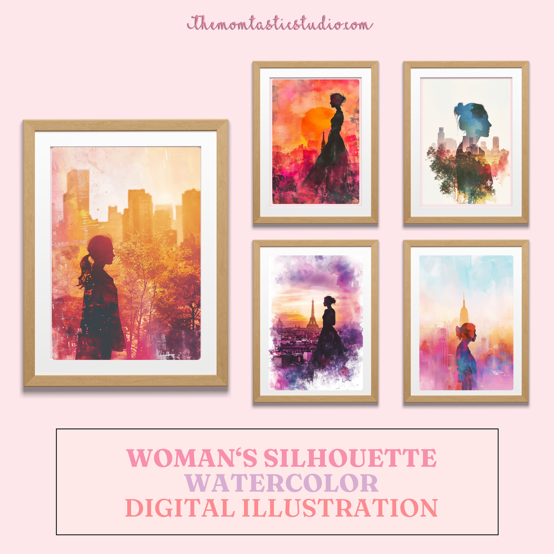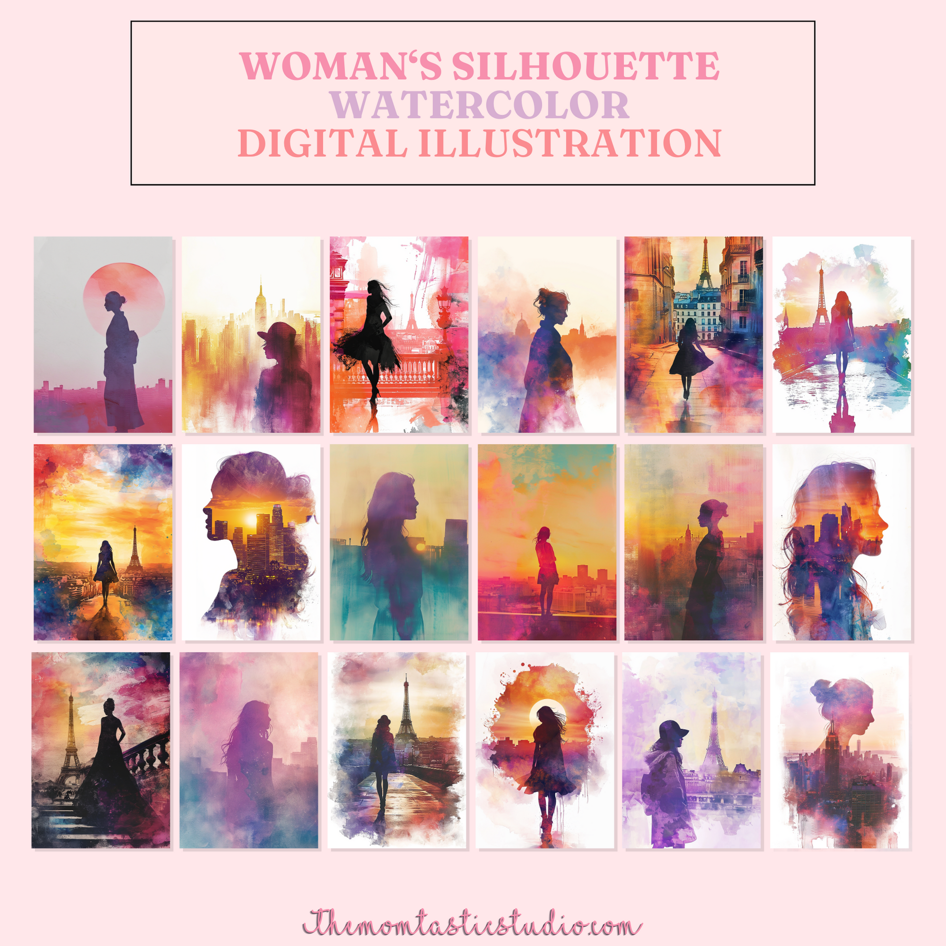 Woman Silhouette - Watercolor Digital Illustration 300DPI – Instant Download – Commercial Use